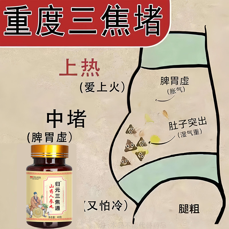 归元三焦不通上热下寒中焦淤堵脾胃虚弱排湿气调理三焦全通丸非茶