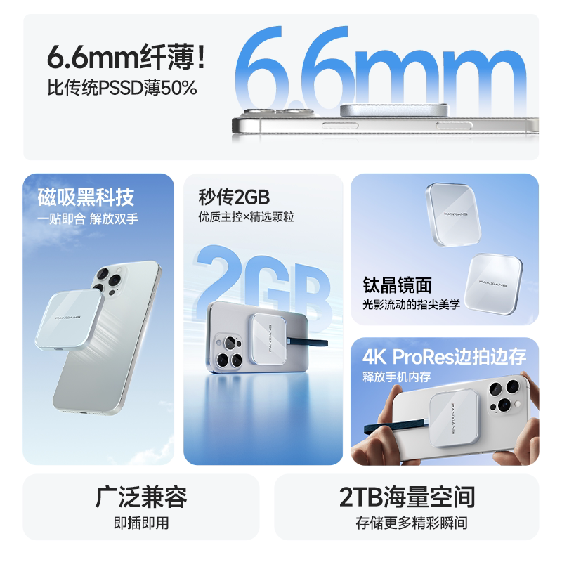 梵想移动固态硬盘ps2005磁吸1t大容量适配苹果手机电脑外接pssd