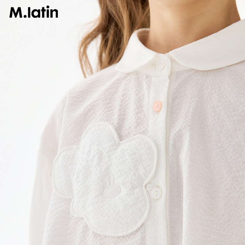 立体云朵抱抱熊绣花装饰,A型泡泡纱衬衫