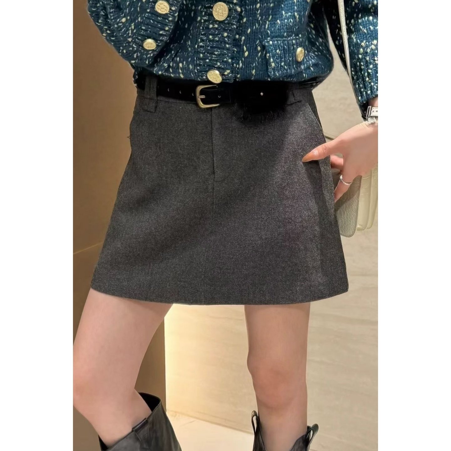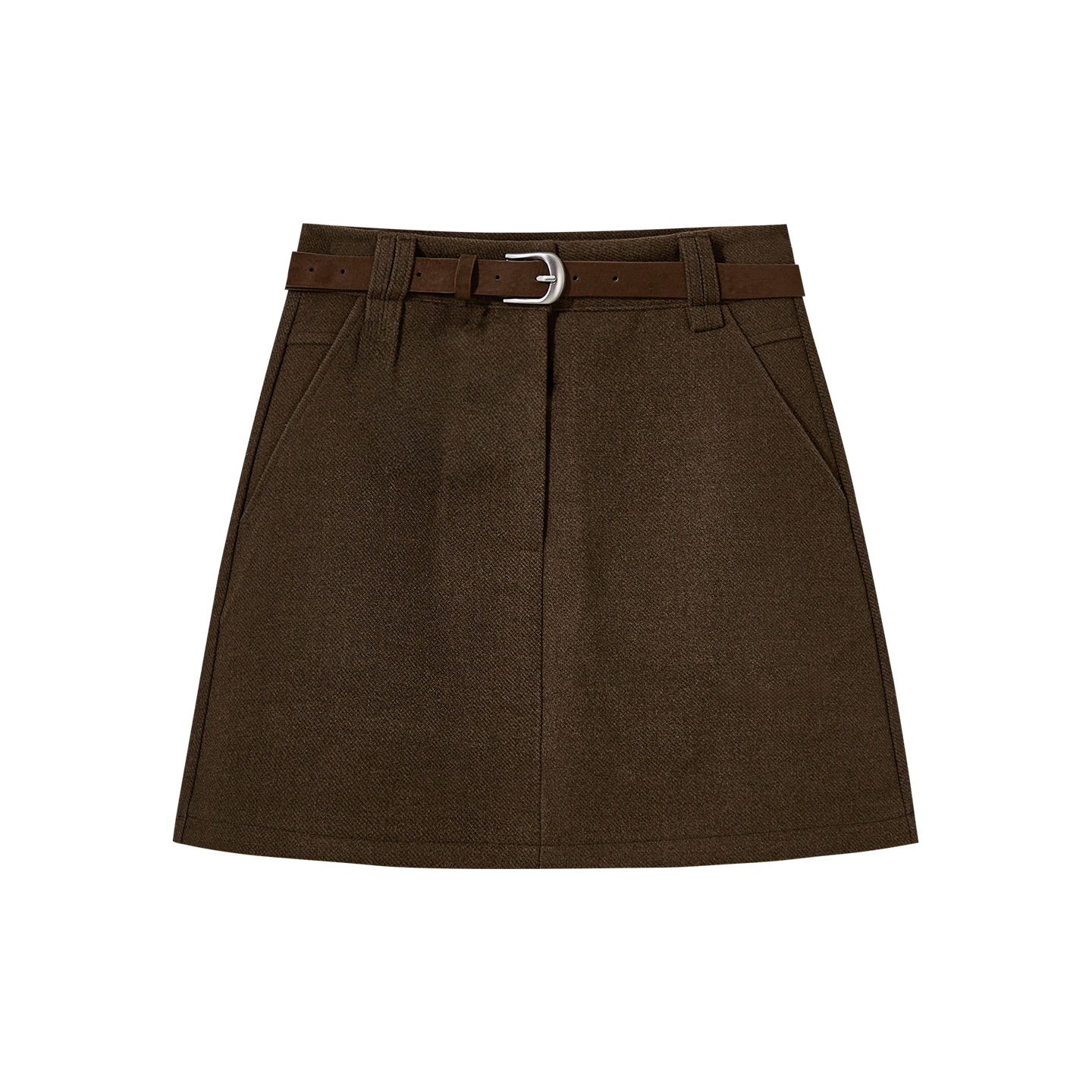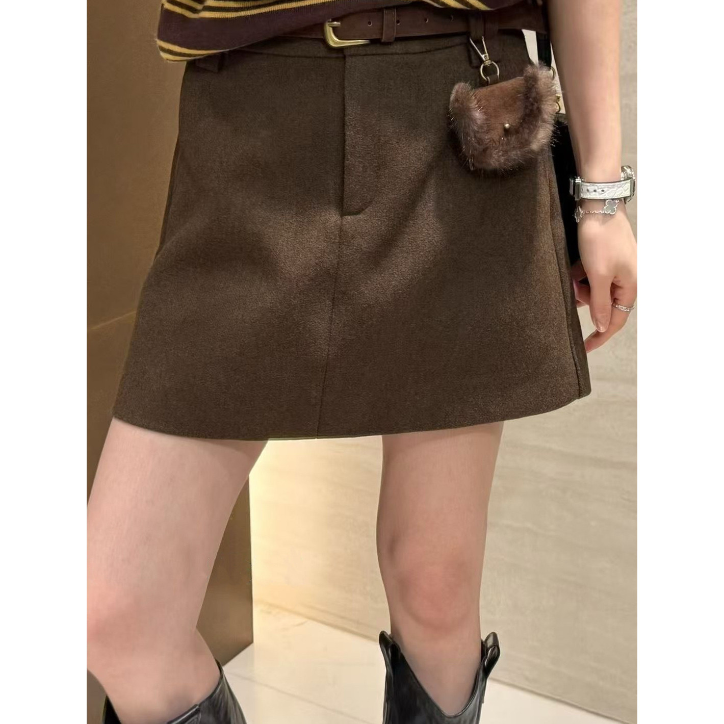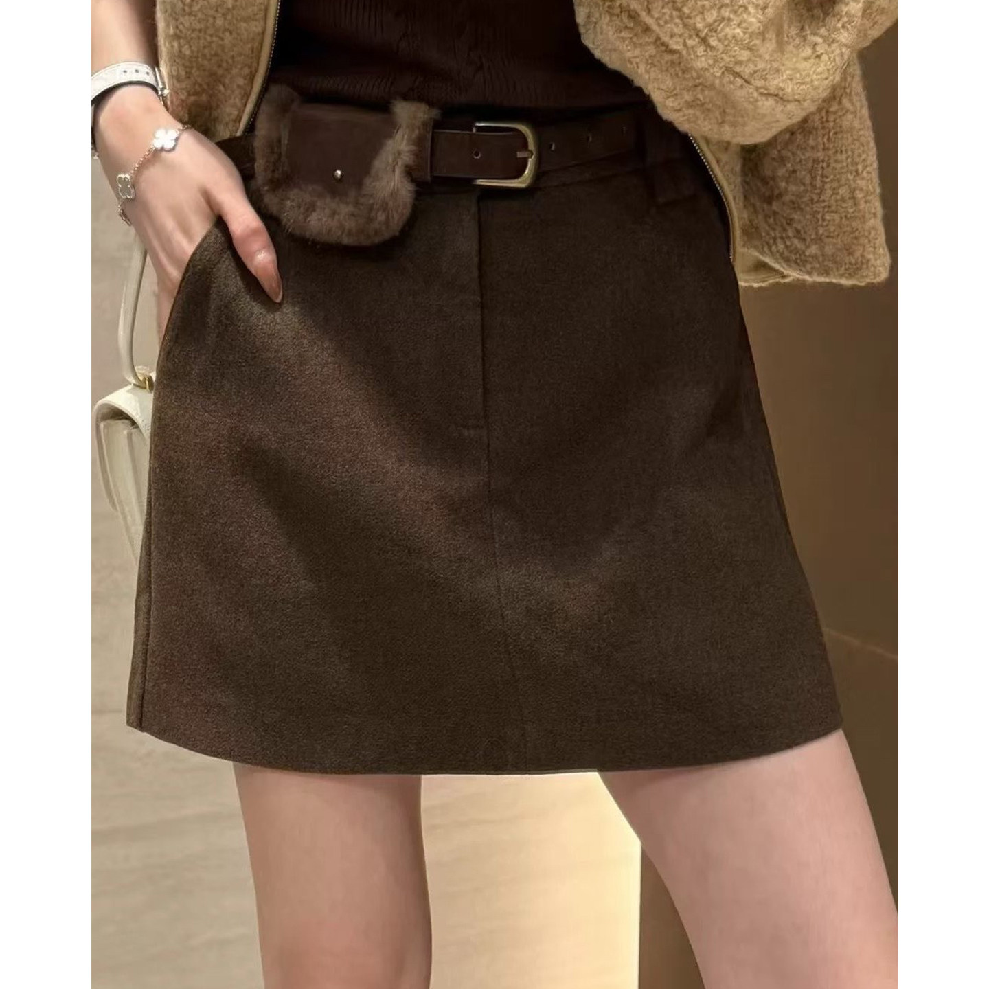 2025新款显瘦高腰毛呢a字半身裙女秋冬气质百搭棕色磨毛包臀短裙