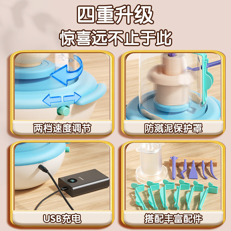 软陶泥儿童电动陶艺机小学生陶土泥工具套装手工diy制作玩具6创意