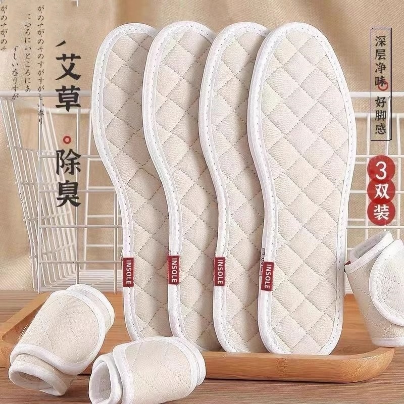 艾草四季除臭亚麻鞋垫男女吸汗防臭透气汗脚专用软底舒适纯棉夏季