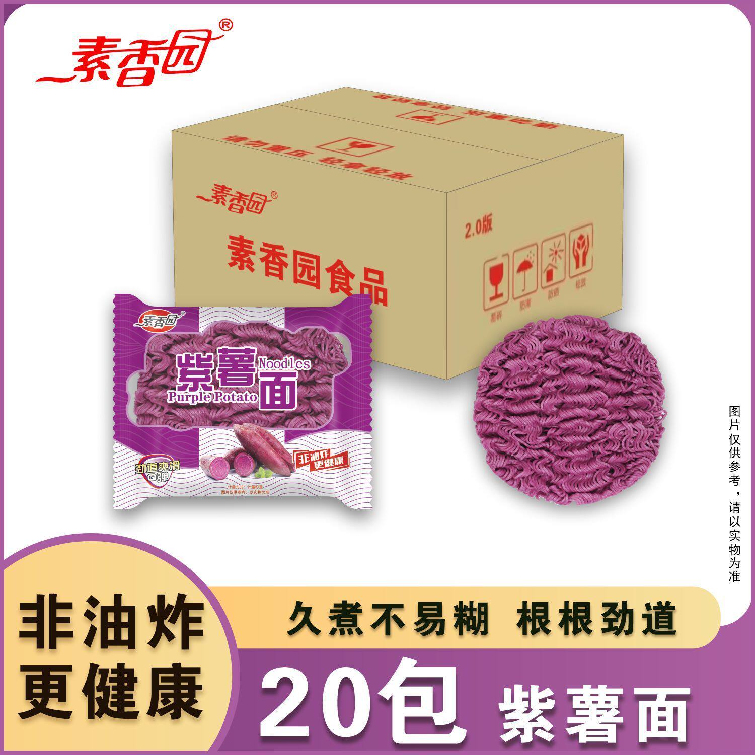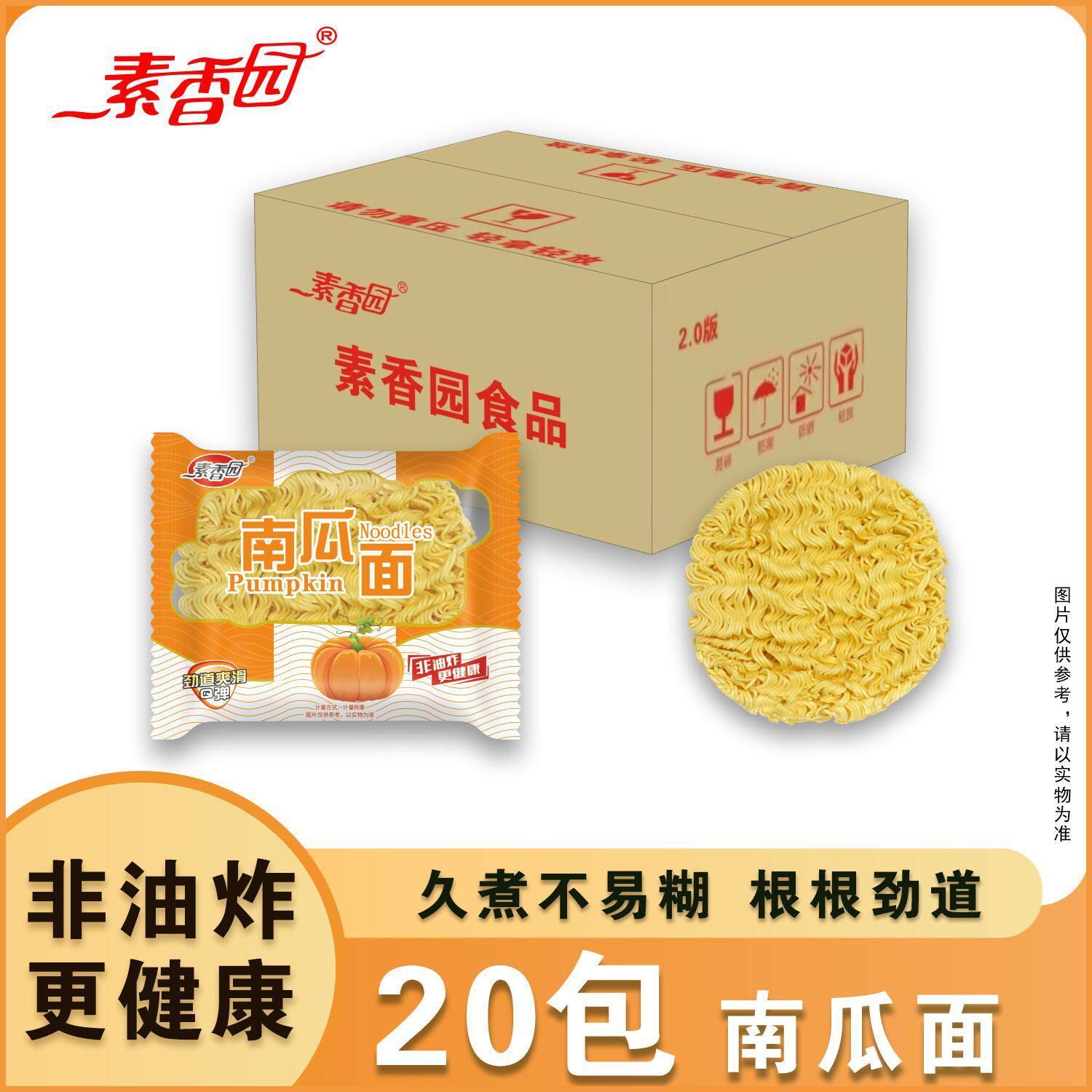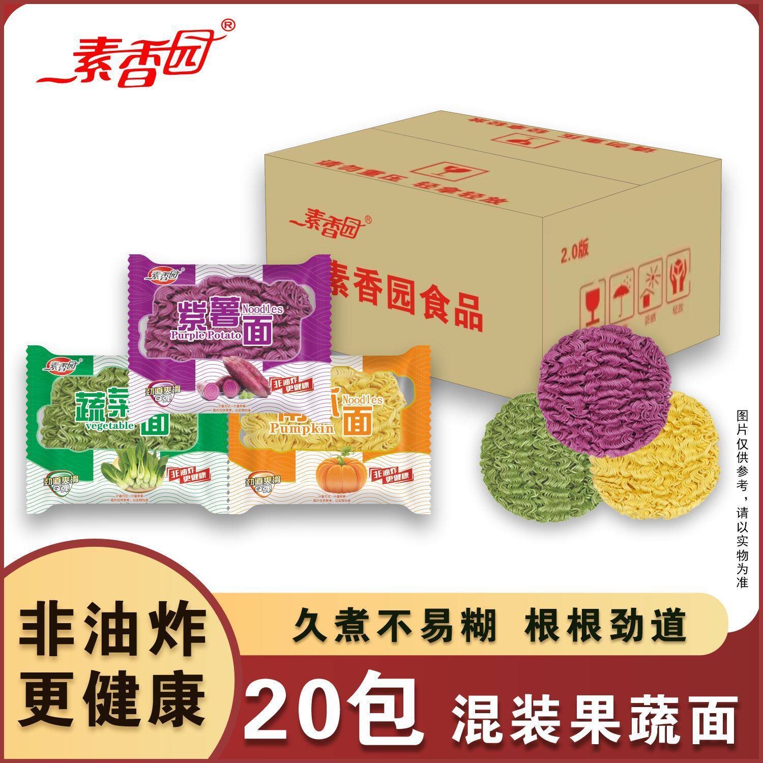 素香园非油炸果蔬面条整箱20袋麻辣烫火锅面早餐面蔬菜南瓜紫薯面