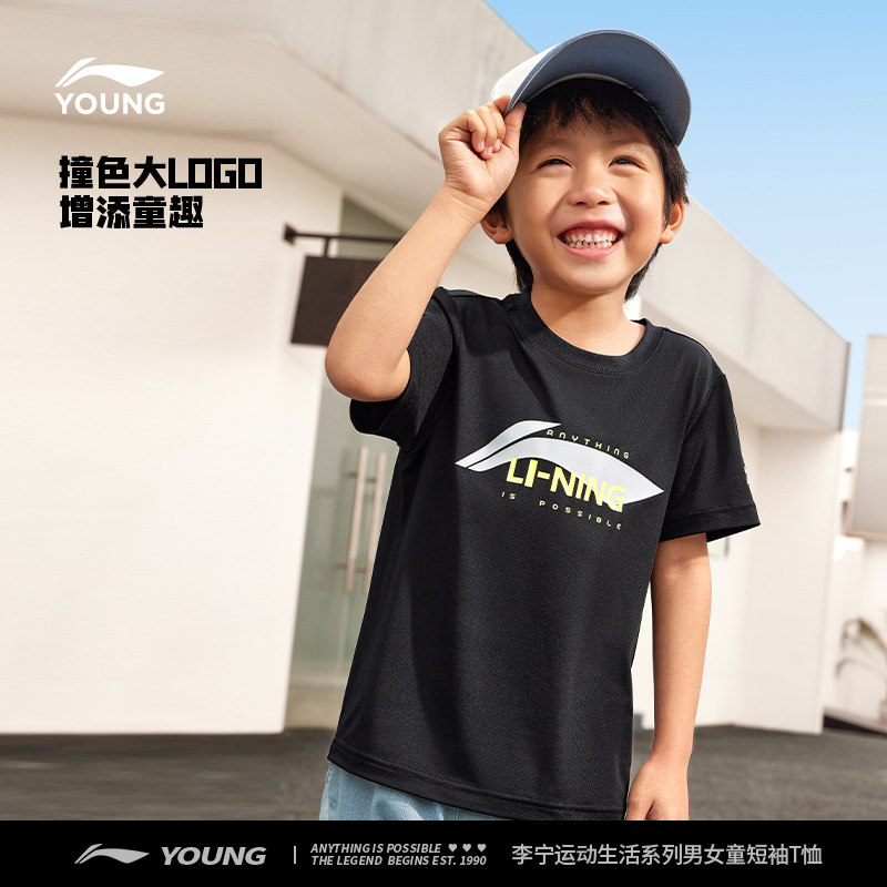 排湿|李宁速干衣短袖T恤儿童上衣夏季夏款男童装女小大童衣服夏装
