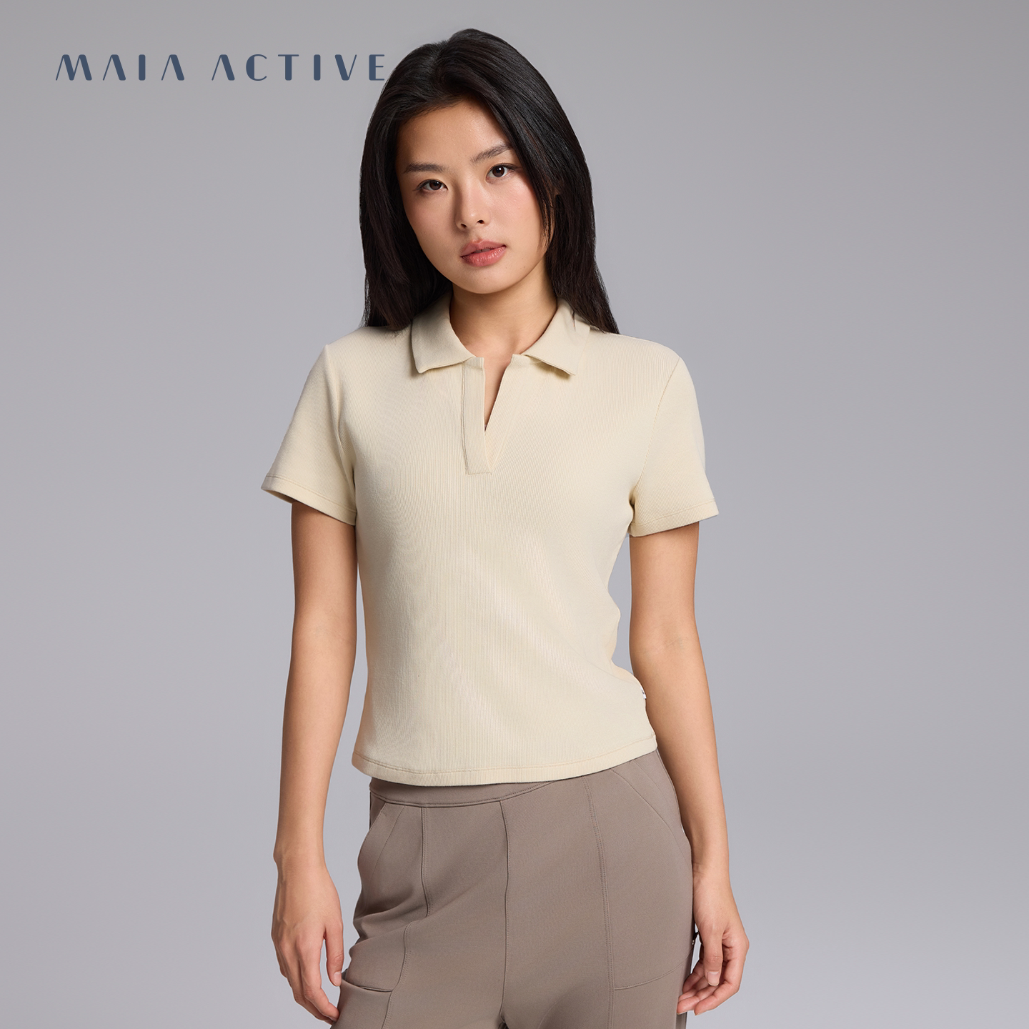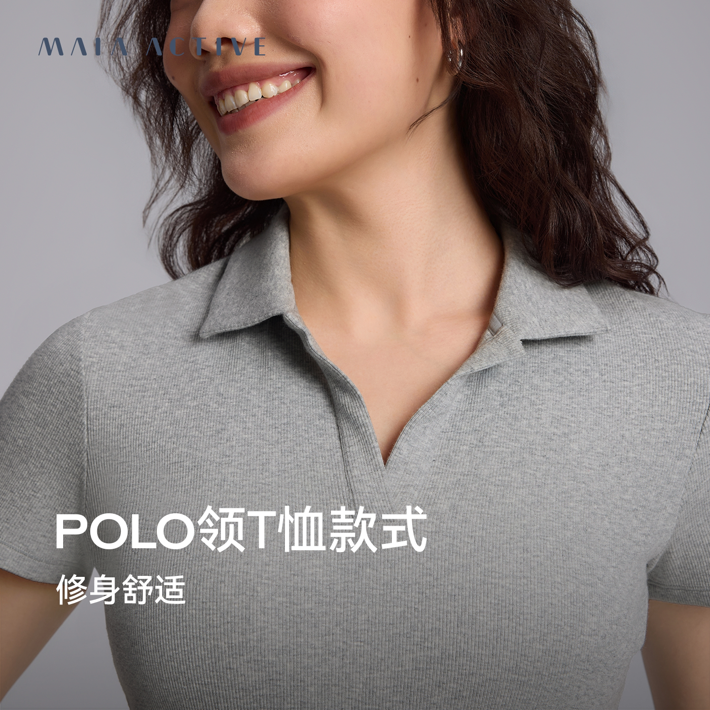 棉罗纹合身短袖POLO衫休闲日常运动T恤瑜伽上衣MAIAACTIVE 62PL05