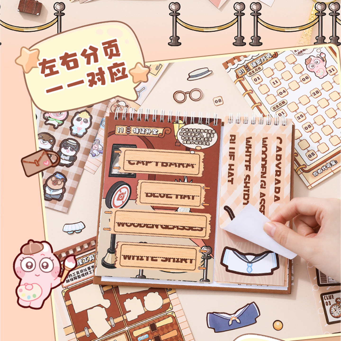 萌崽新款果冻贴纸安静书卡皮巴拉女孩免裁剪diy材料包儿童益智玩具