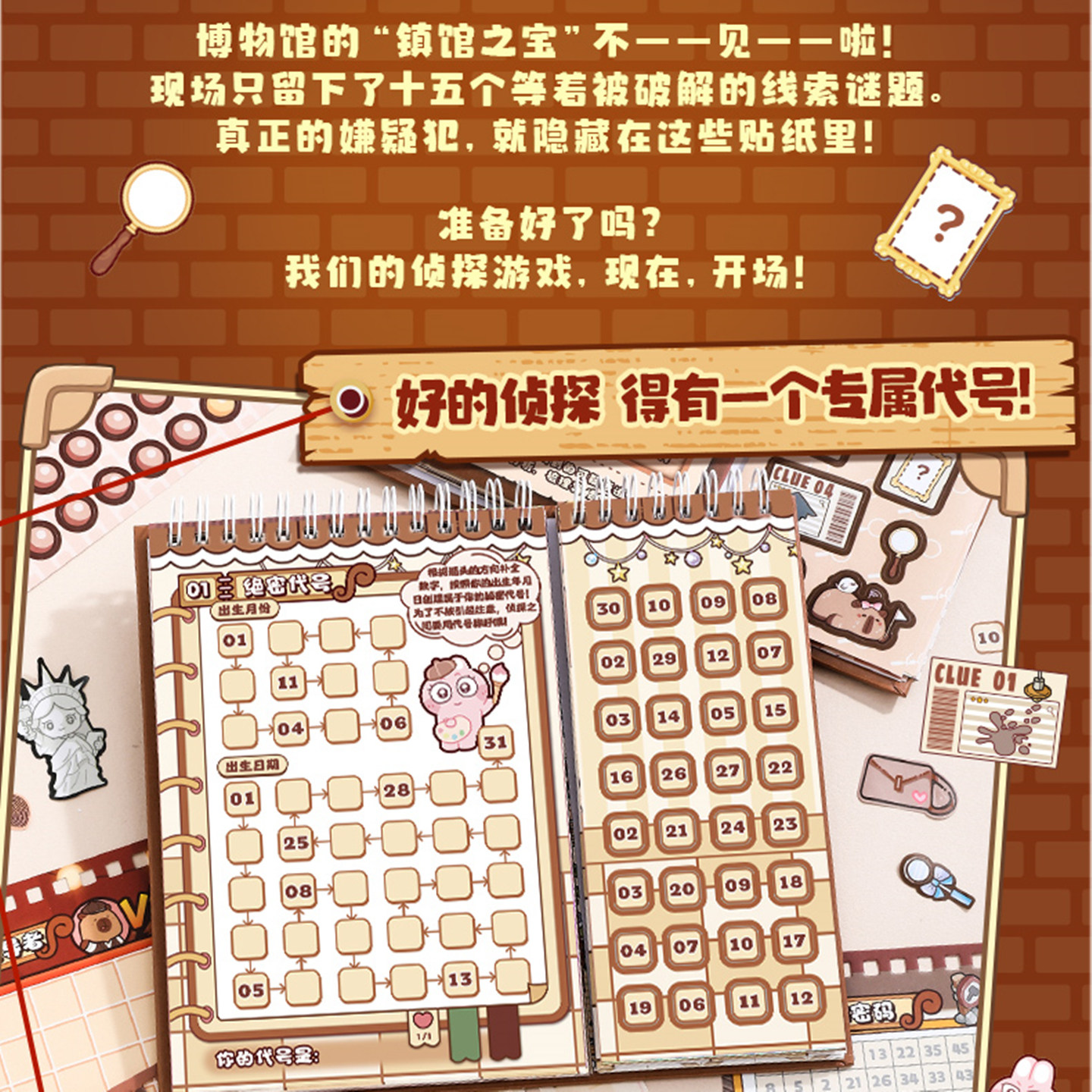 (锻炼逻辑思维化身小侦探)免剪15种玩法益智侦探破案益智游戏贴纸书安静书过家家玩具儿童女孩假期奖励孩子