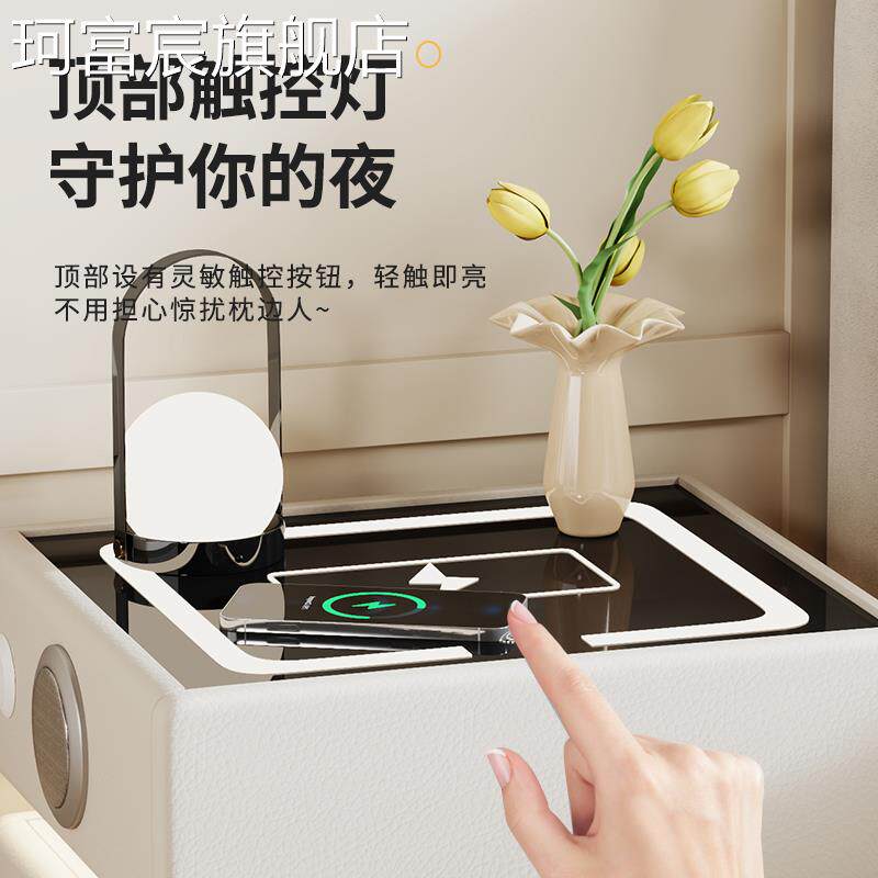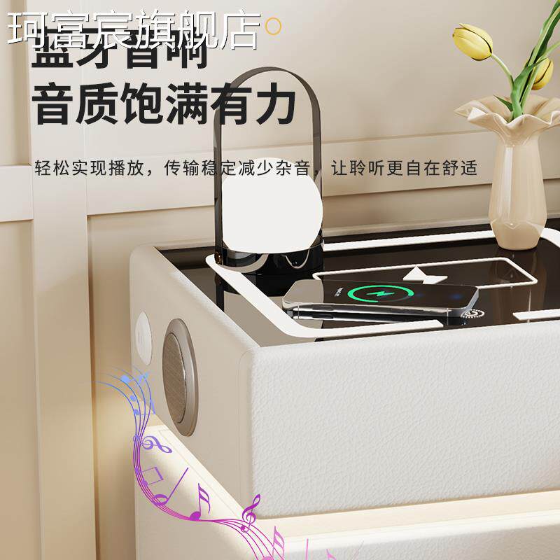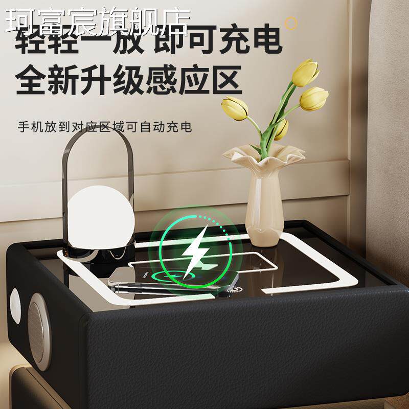 珂富宸智能床头柜保险柜一体多功能充电带密码锁现代简约家用小型保险箱摆件饰品床笠拉车盖布