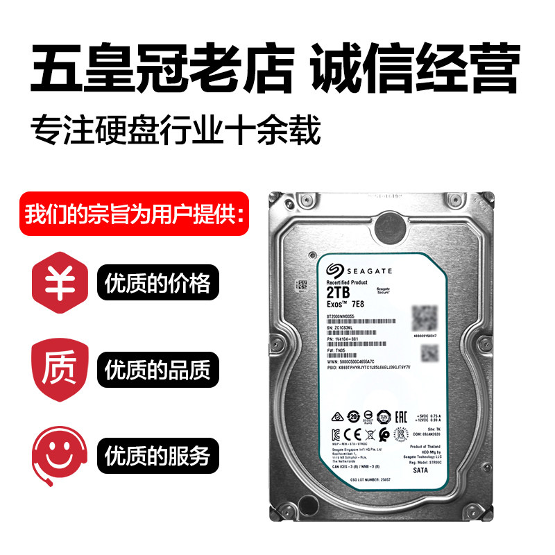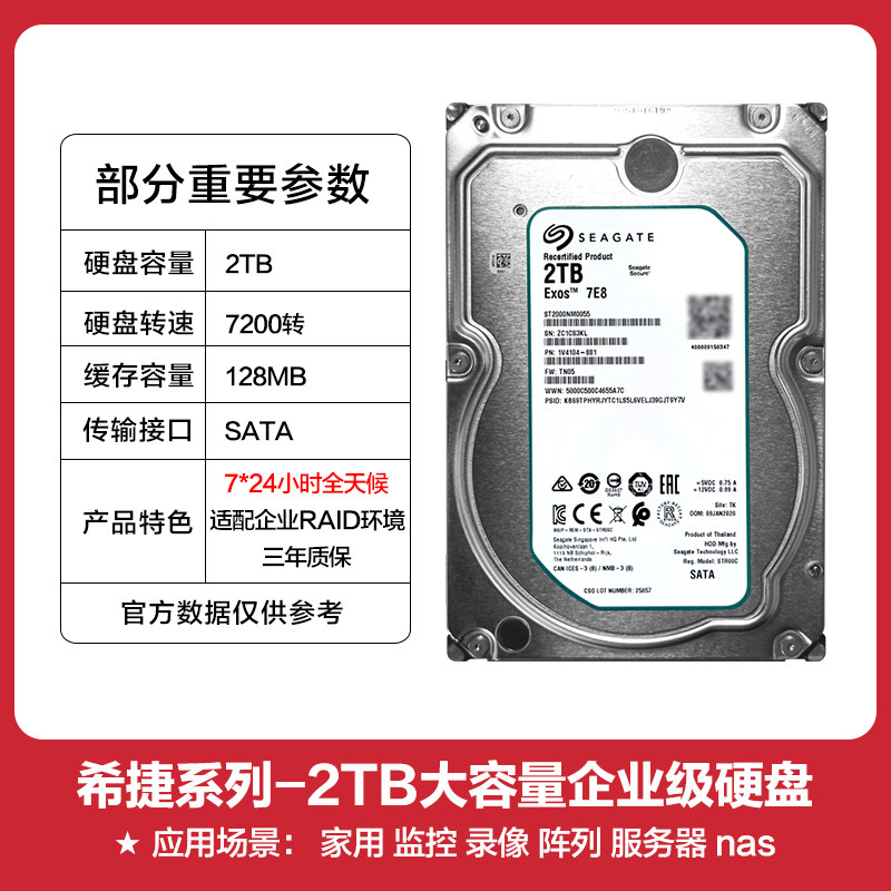 希捷机械硬盘2TB 银河企业级服务器NAS存储CMR垂直盘ST2000NM0055