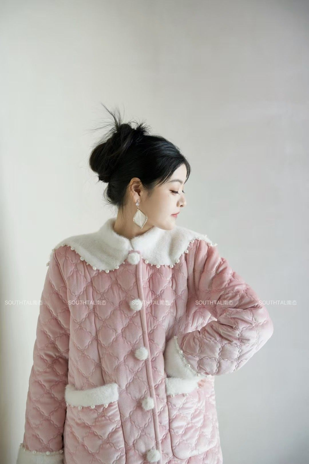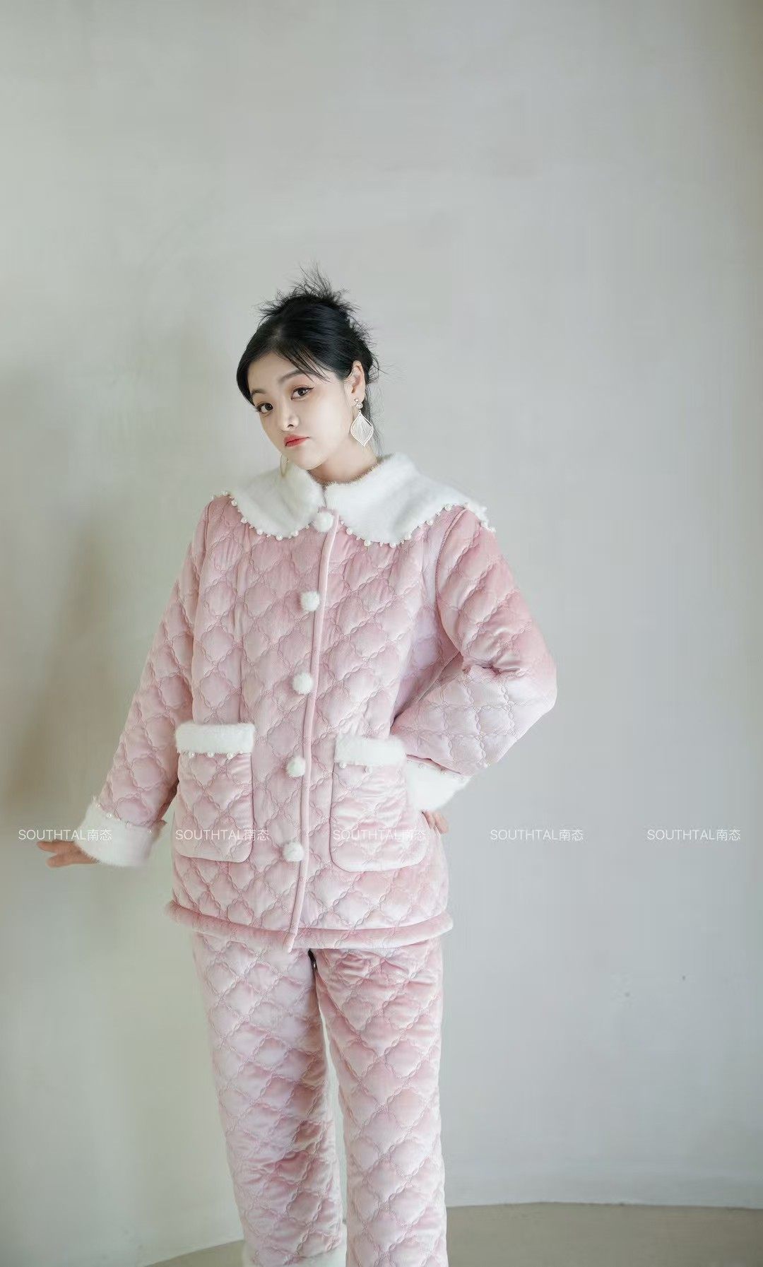 慢写冬续南态冬季加厚可外穿三层夹棉加绒加厚可外穿睡衣套装