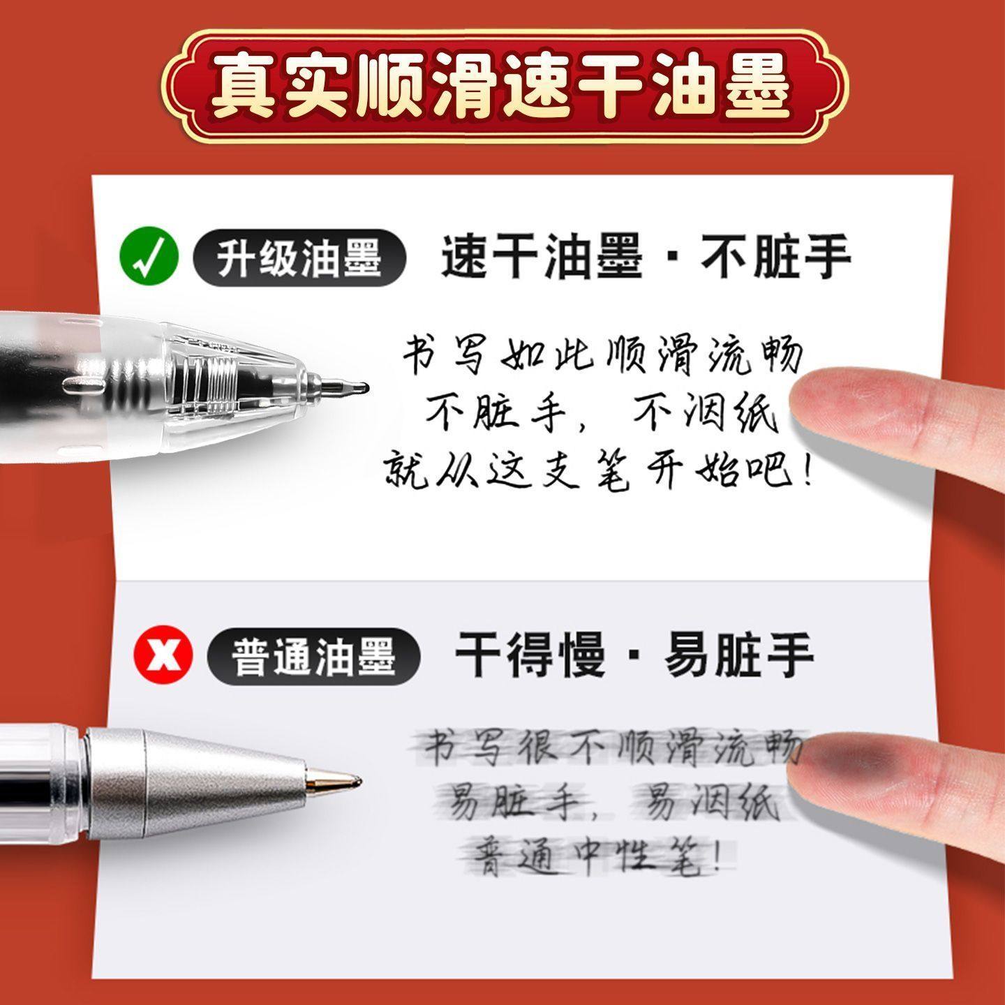 晨光按动中性笔黑色笔速干顺滑高颜值红蓝碳素笔考试办公用签字笔