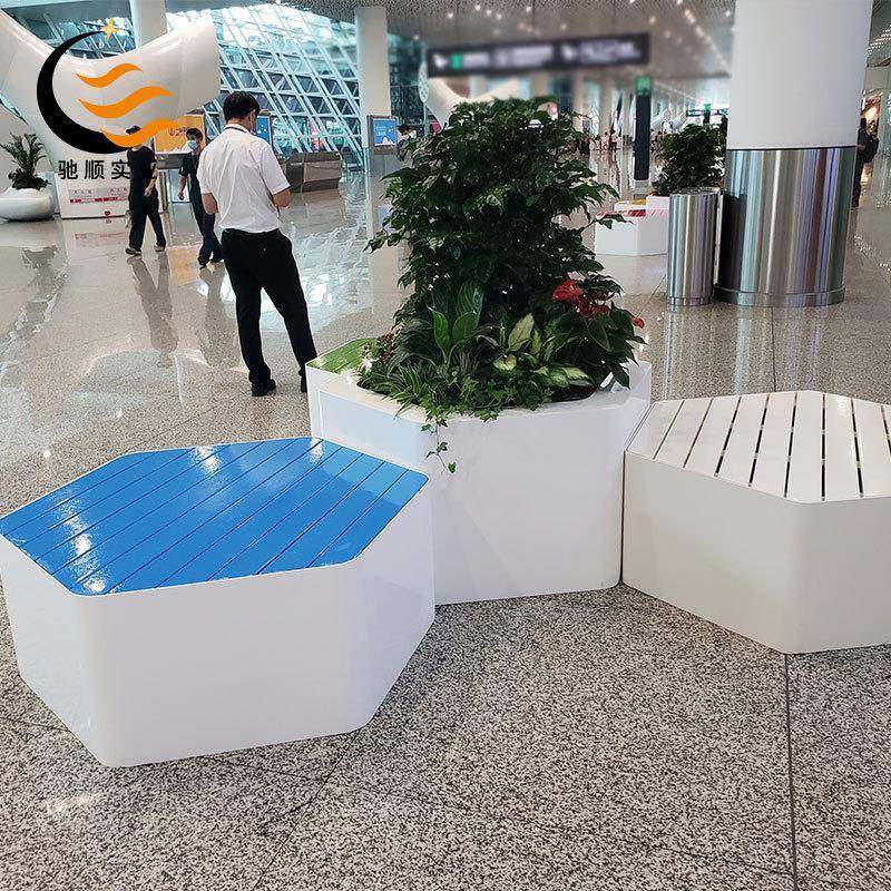 新款异形多边形玻璃钢机场休闲椅商场等候区花盆座椅创意花器组合