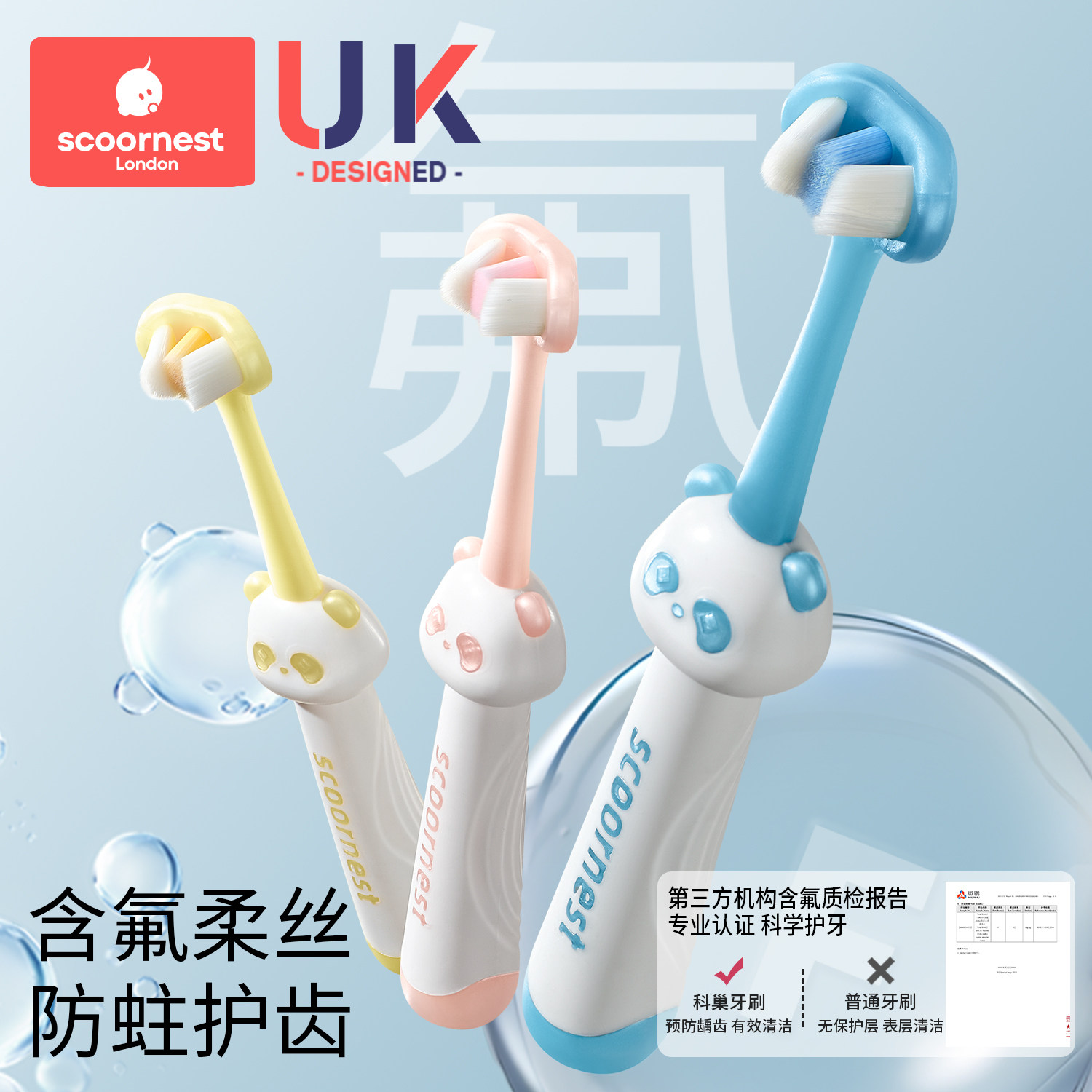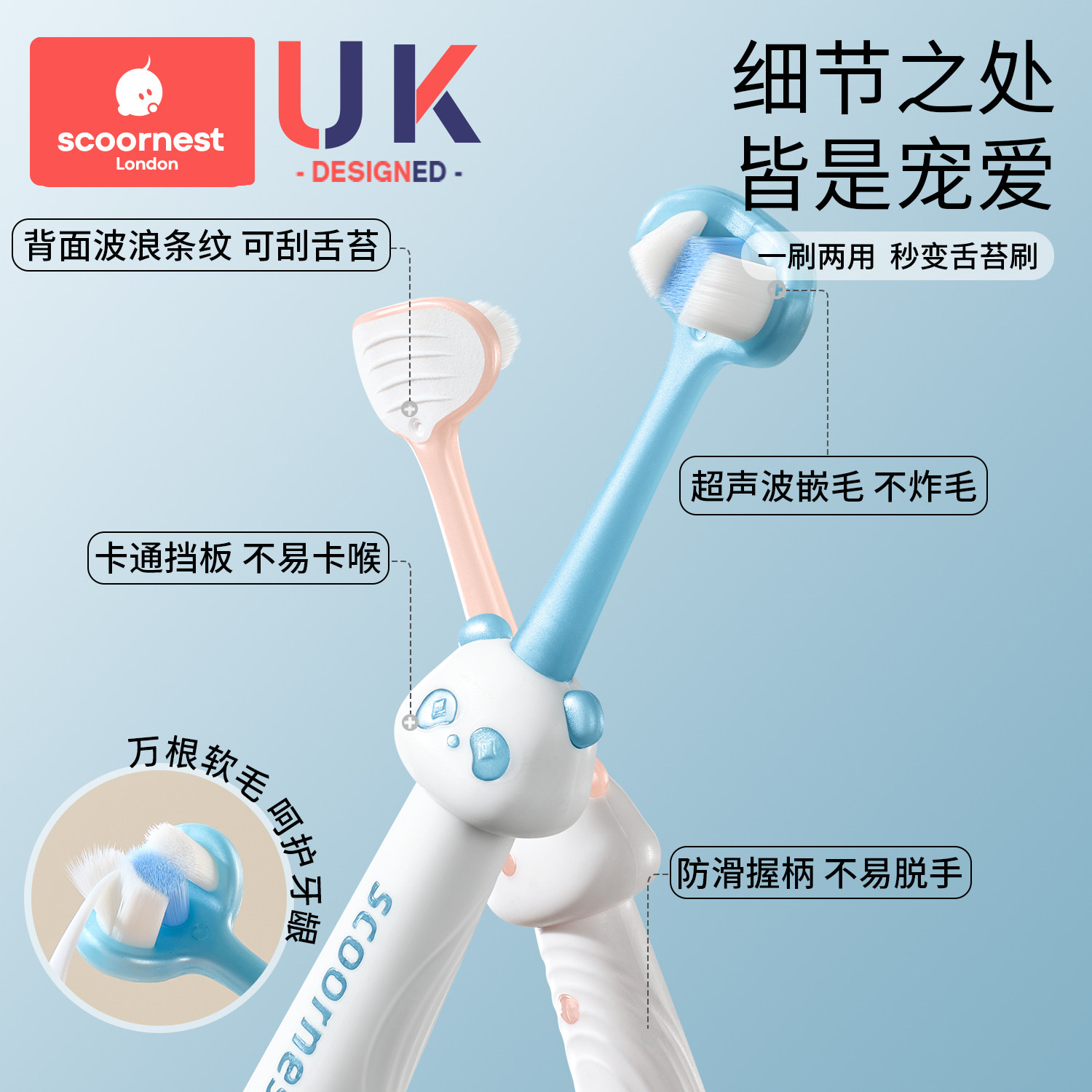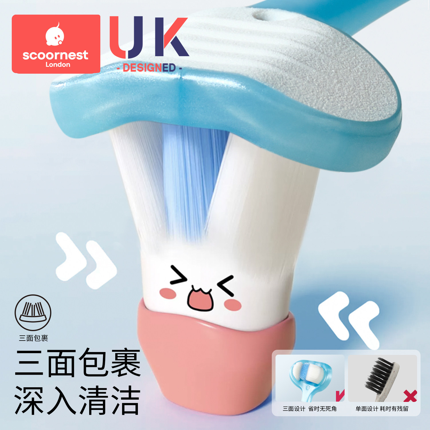 科巢儿童三面软毛牙刷宝宝u型清洁0-1-2到3-4到6岁婴幼儿乳牙专用