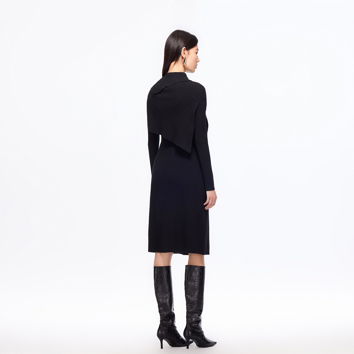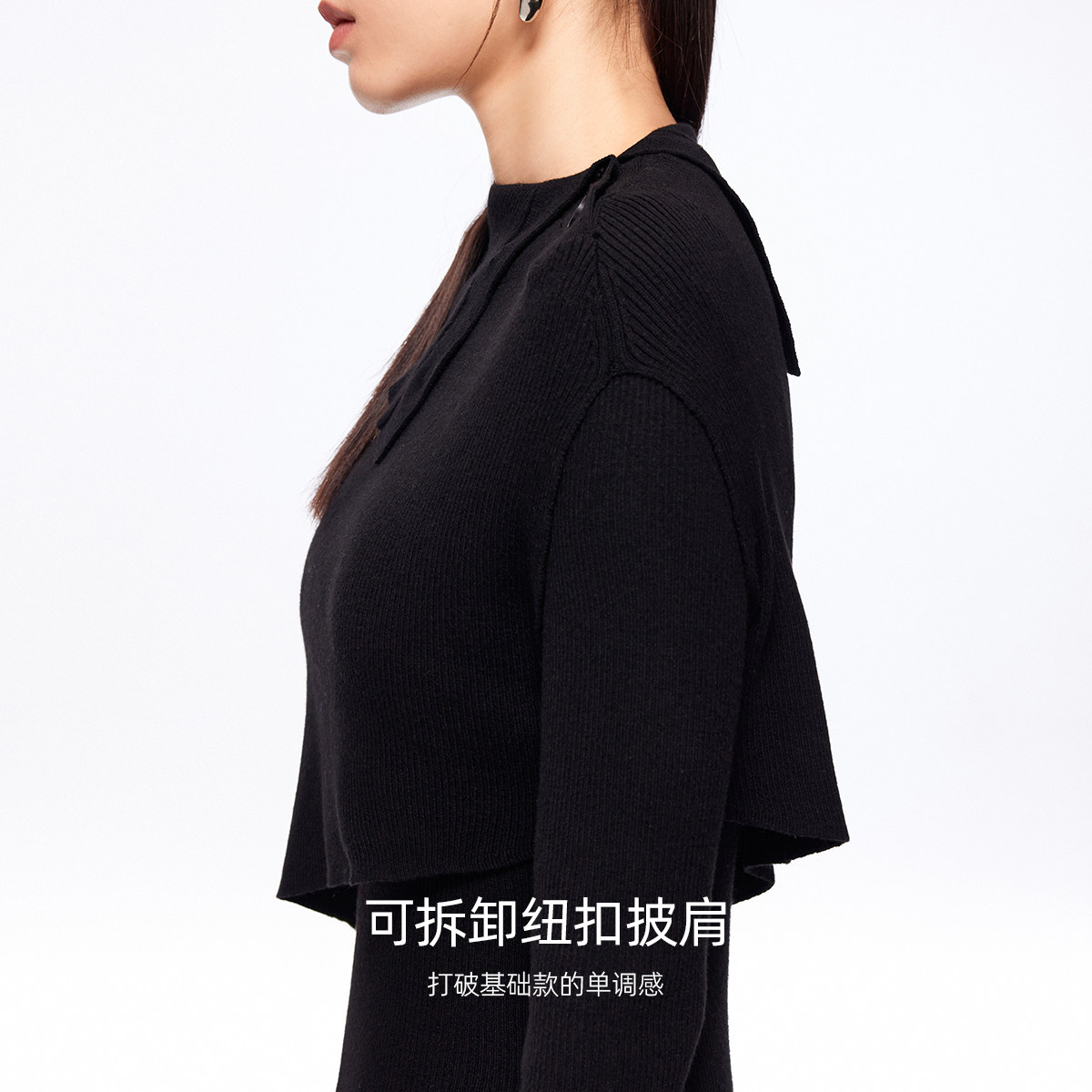 Vero Moda连衣裙2025秋冬新款含绵羊毛桑蚕丝可拆卸披肩裙淑女风