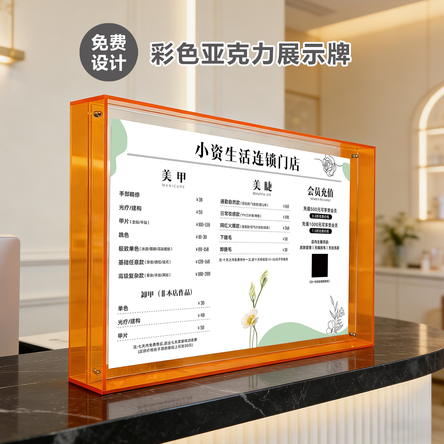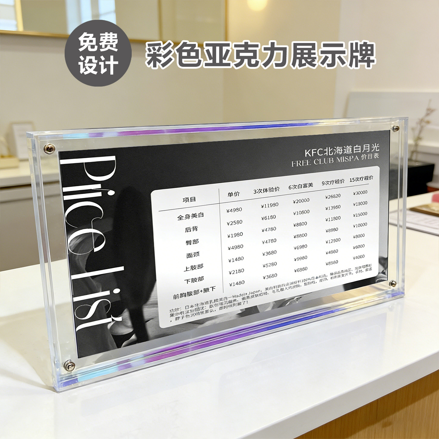 美容院价格表ins风炫彩亚克力桌面立牌美甲美睫皮肤管理创意摆台