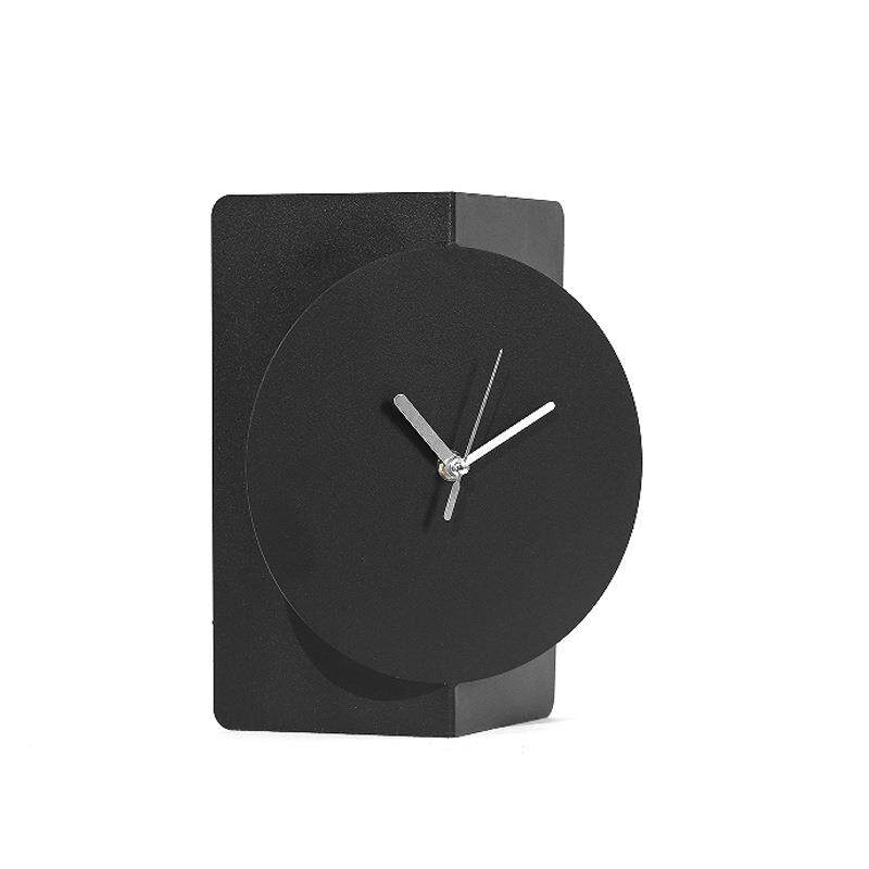 现代极简约诧寂风黑色金属哑光磨砂质感几何装饰闹钟座钟摆件个性