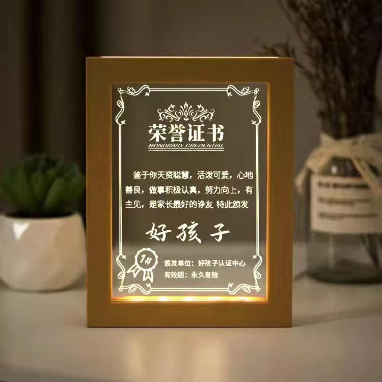 父亲节礼物荣誉证书小夜灯定制奖状送爸爸妈妈男女朋友闺蜜
