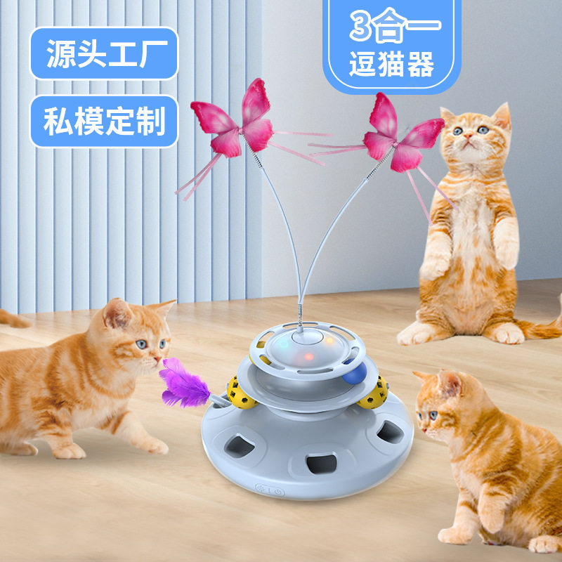 电动猫玩具逗猫棒猫转盘猫咪解闷猫自嗨神器蝴蝶逗猫热销宠物猫