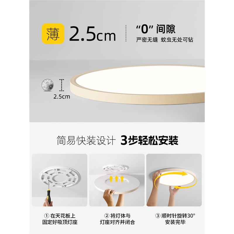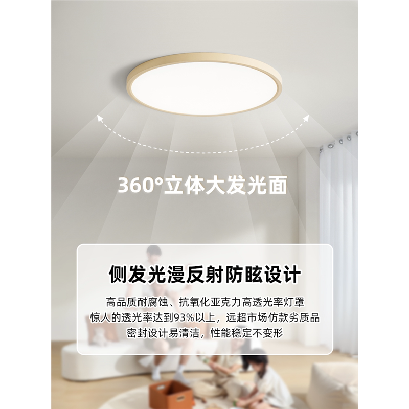 超薄无缝隙卧室吸顶灯全光谱护眼儿童房间灯奶油风餐厅主卧书房灯