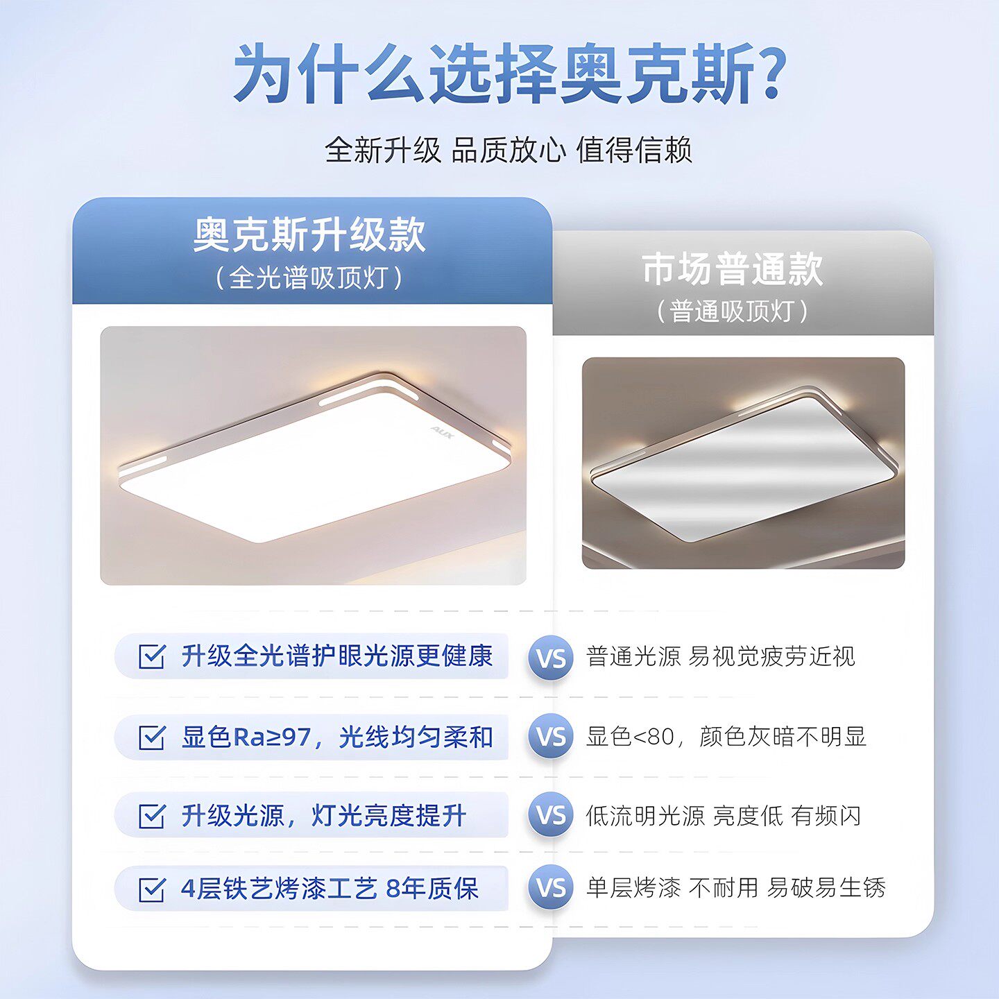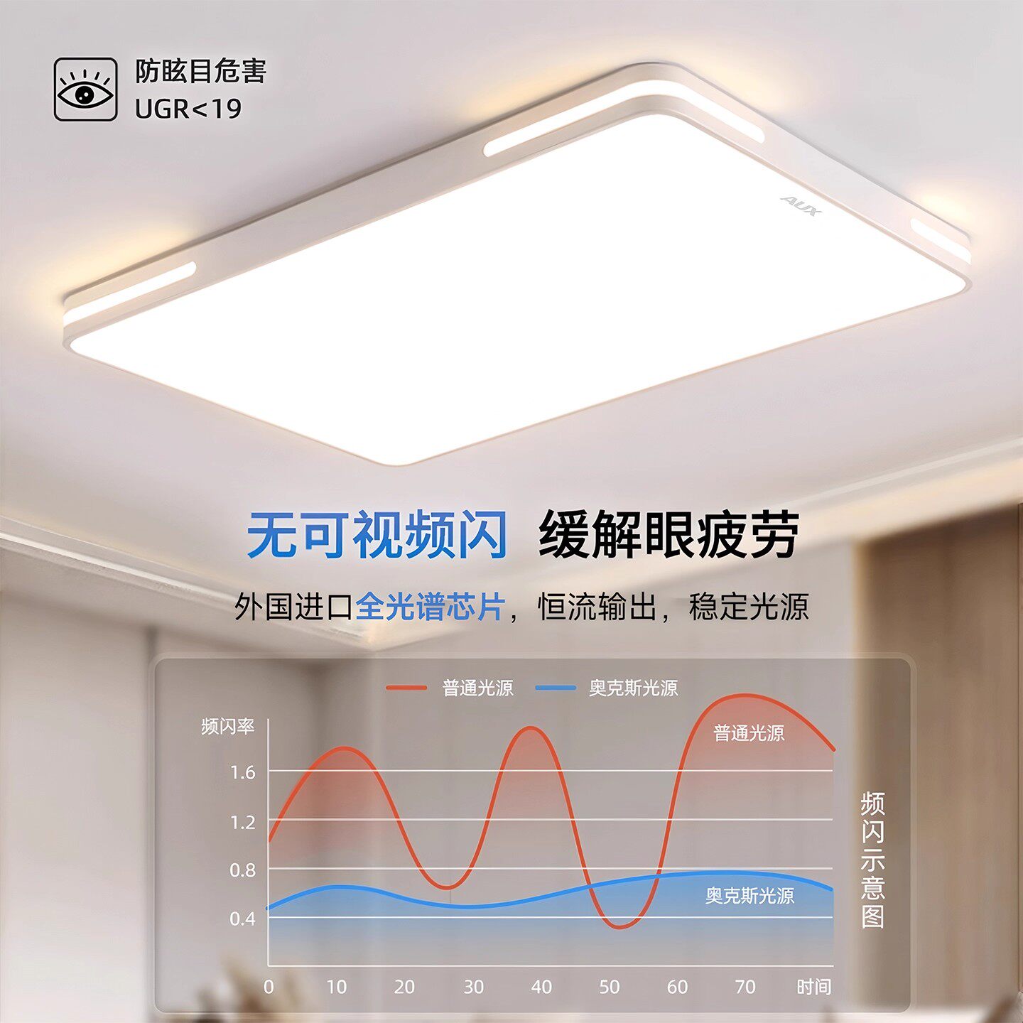 奥克斯卧室2025新款主卧全光谱led卧室吸顶灯护眼圆中山灯具简约