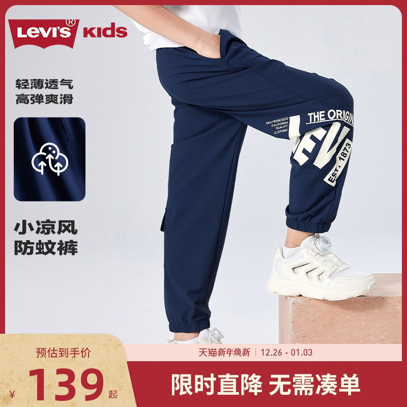 Levi's李维斯男童裤子防蚊裤2025夏季新款儿童束脚长裤凉感休闲裤