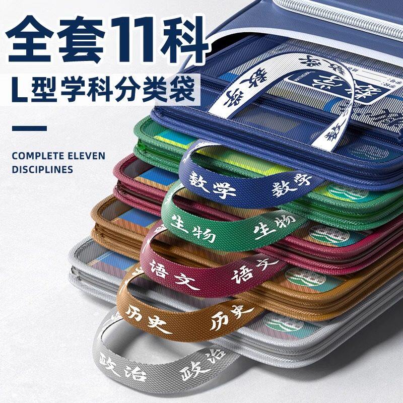 l型科目分类袋初中生透明分科文件袋拉链式男孩专用学科分科小学生学习作业手提拎书袋课本分类大容量收纳袋