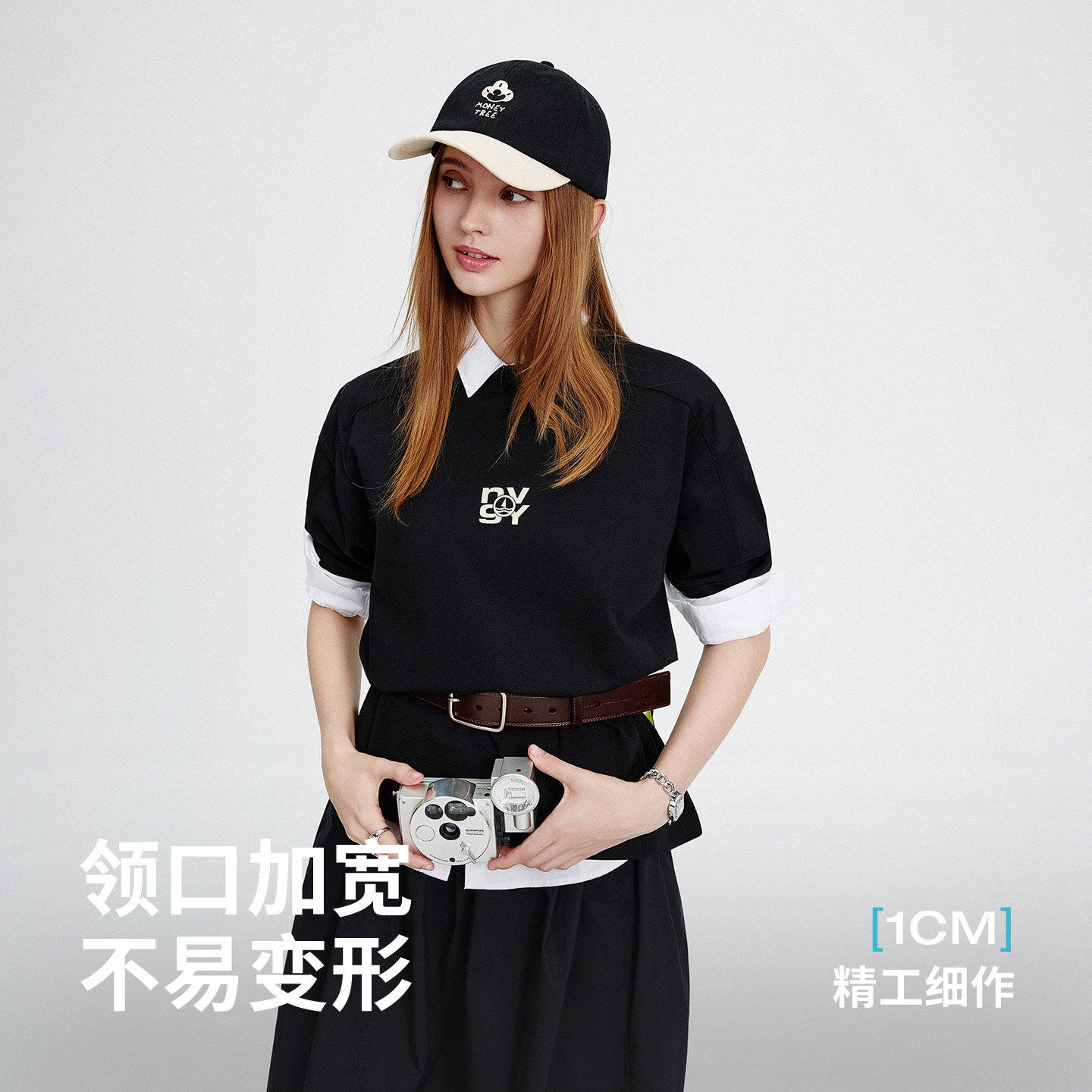 大洪官方轻氧T高级休闲简约显瘦圆领短袖T恤时尚宽松气质纯色上衣