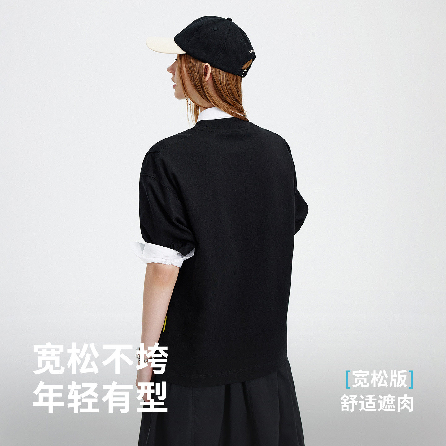 Navigare意大利小帆船黑色圆领短袖T恤女2026夏季宽松半袖体恤衫