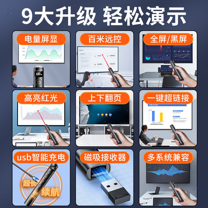 【教师推荐】多功能翻页笔ppt会议遥控笔教师用充电款激光红外多媒体投影仪教学讲课演讲白板专用课件翻页器