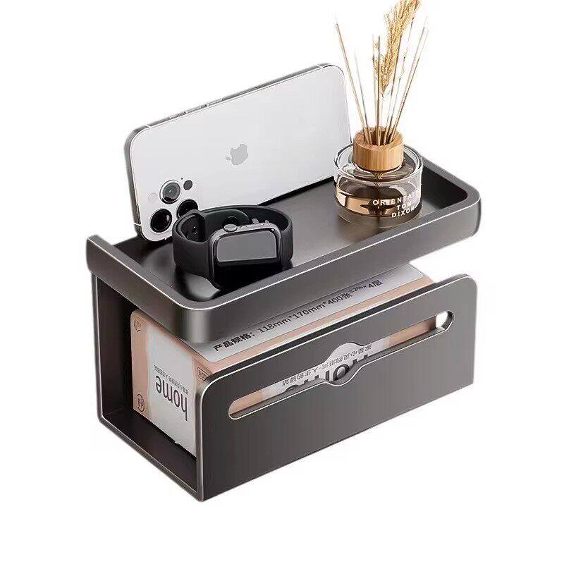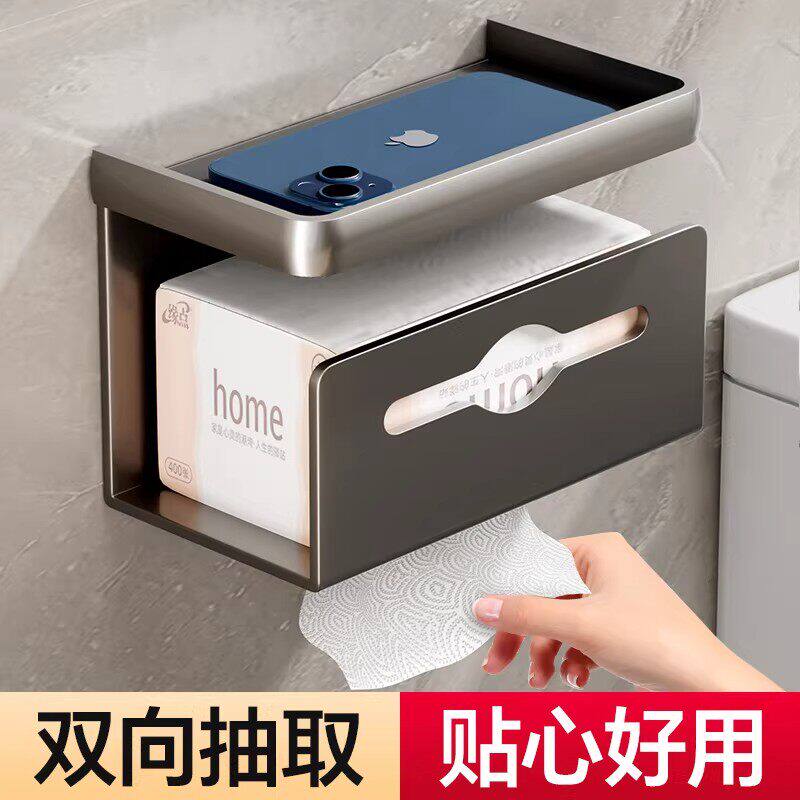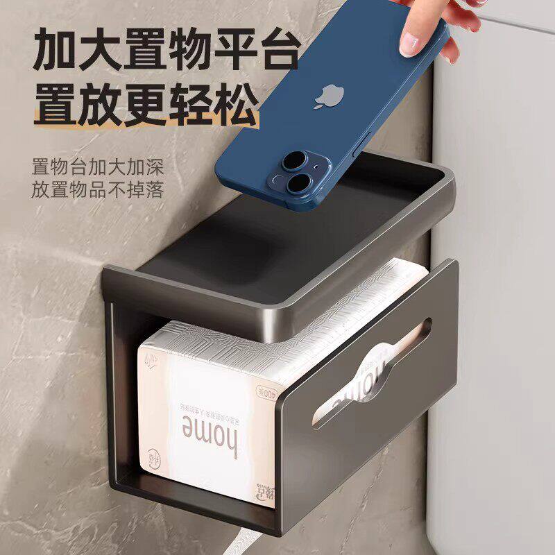 绚静卫生间厕所纸巾盒免打孔卷纸架浴室抽纸盒手机置物架壁挂厕纸