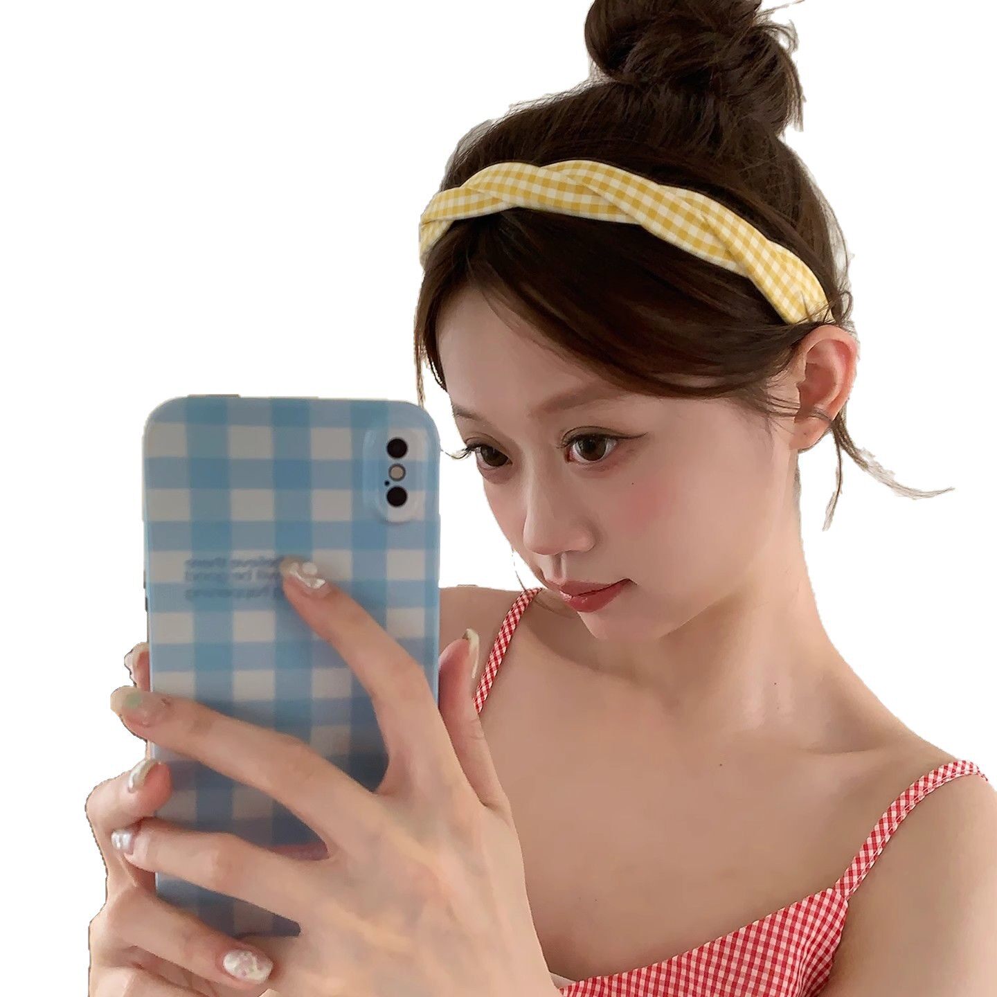 夏日麻花格子发箍女2025新款高颅顶头箍外戴压发发卡少女感发饰