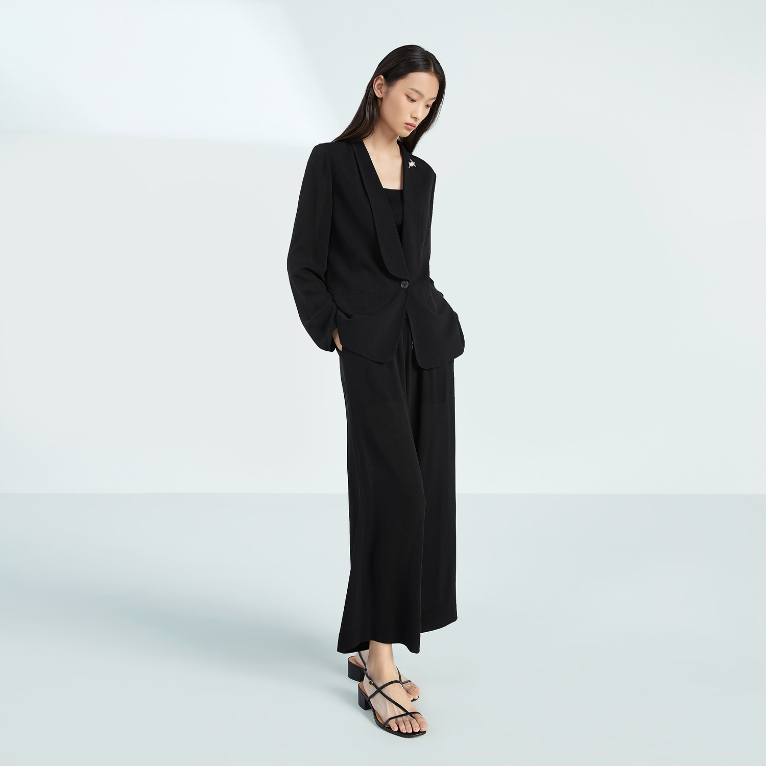 【重磅真丝】OVV春夏热卖女装飘逸23MM鬼绉松紧腰阔腿西裤