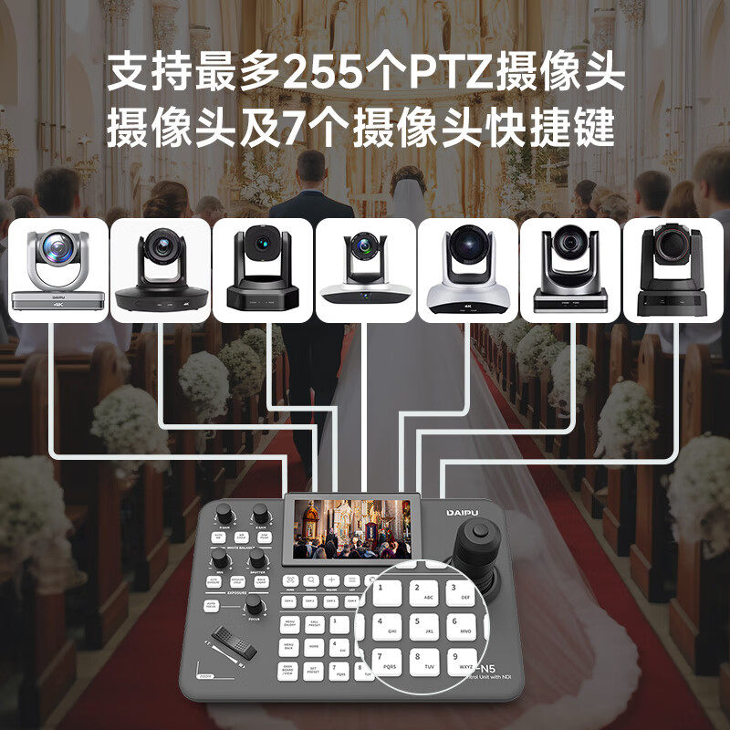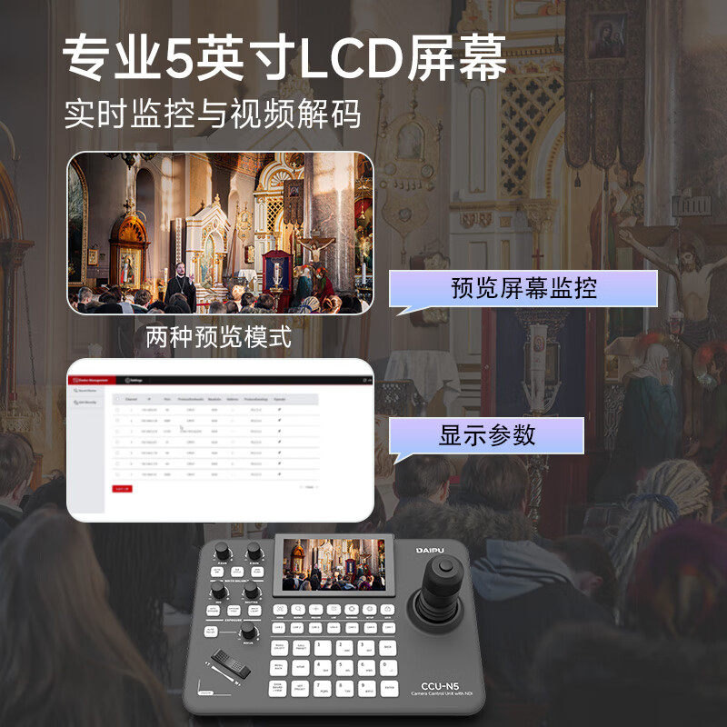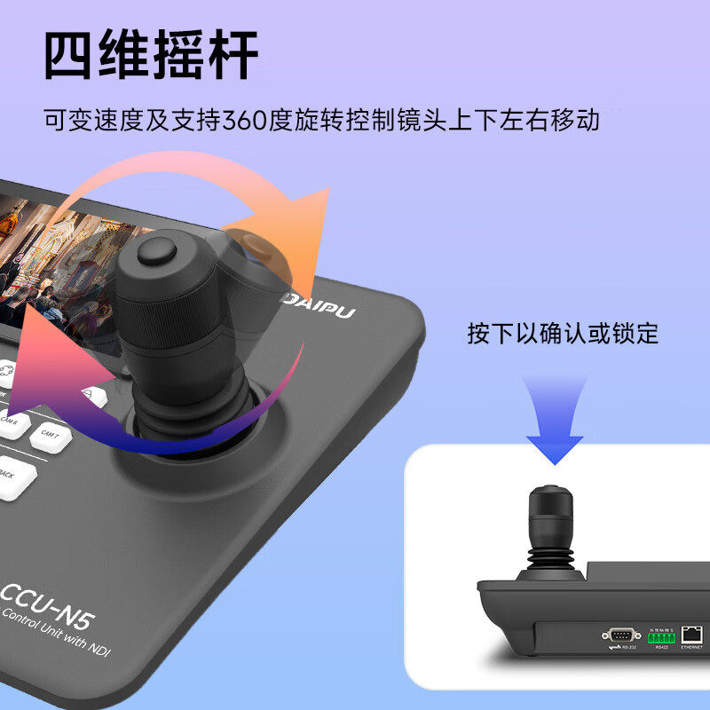 戴浦视频会议摄像头控制键盘 5英寸液晶屏云台摇杆远程会议支持NDI协议兼容摄像机7机位切换DP-CCU-N5