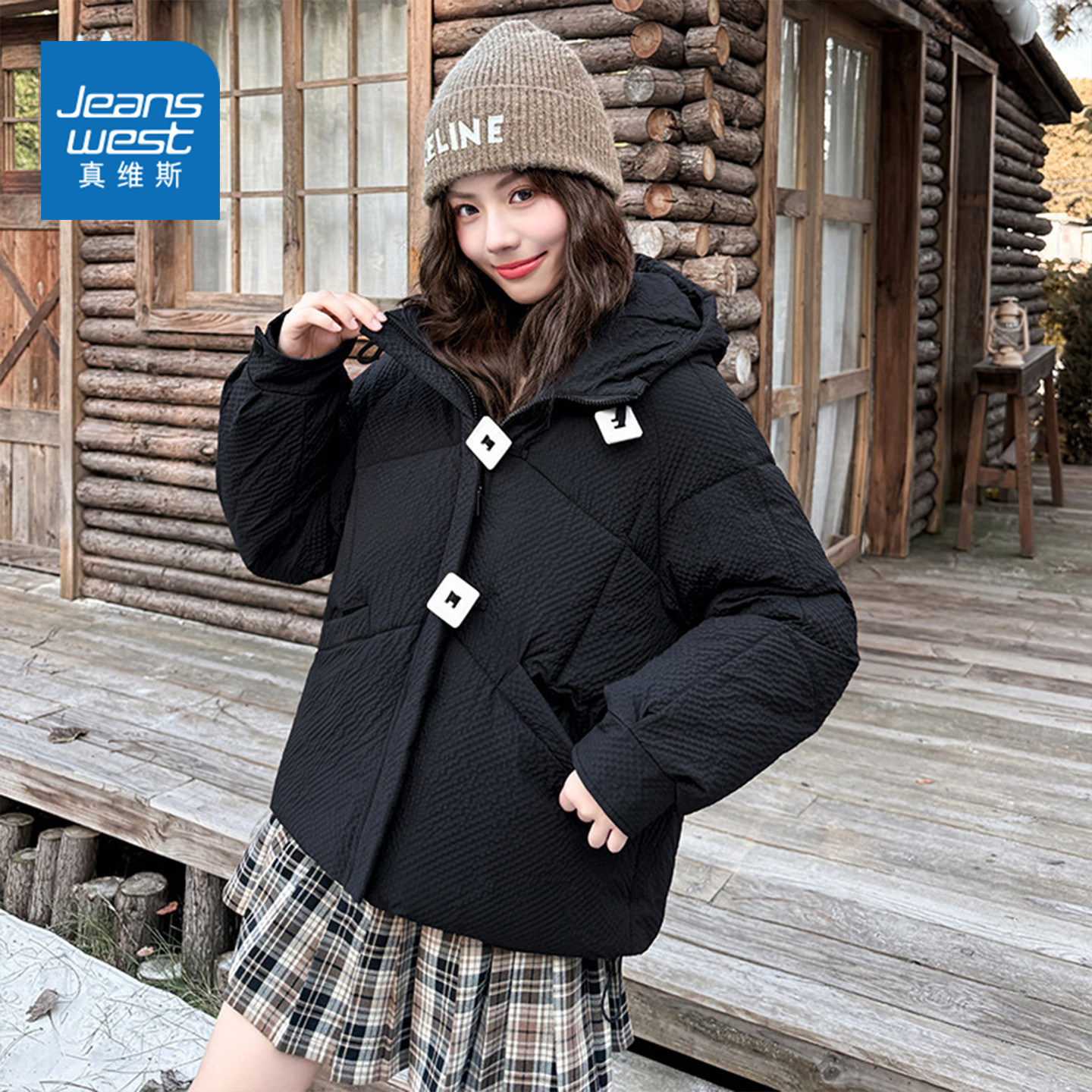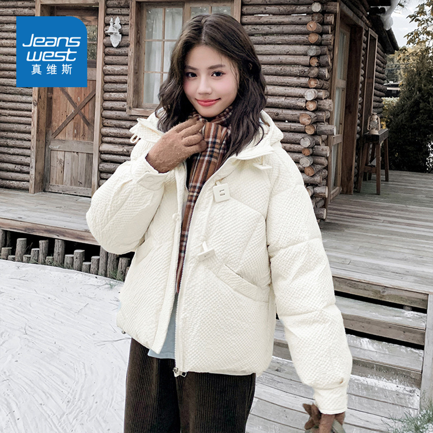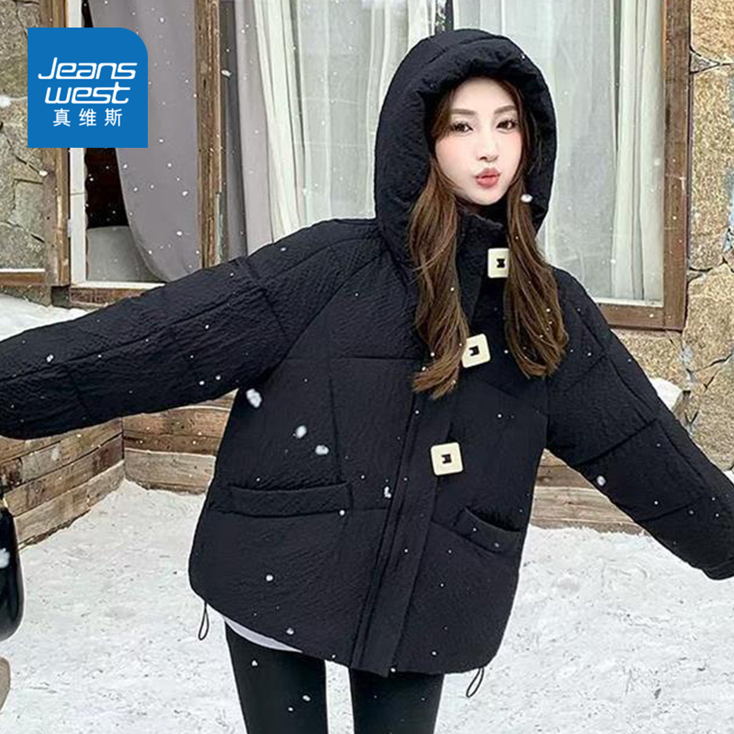 GL真维斯短款棉服女2025新款冬季小个子宽松保暖连帽外套面包服女