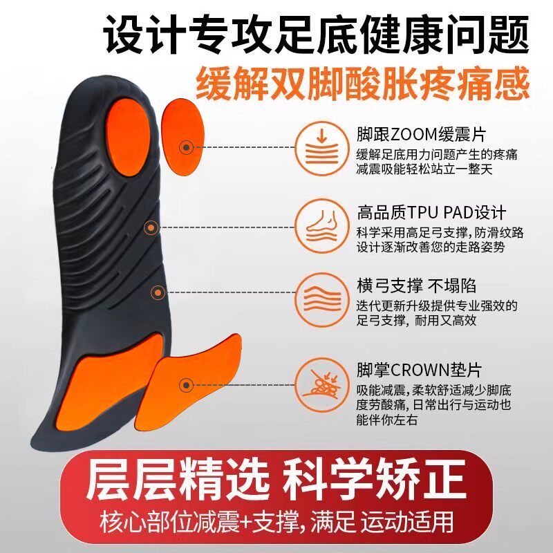 石墨烯除臭鞋垫男女款吸汗防臭透气专业运动气垫减震足弓支撑