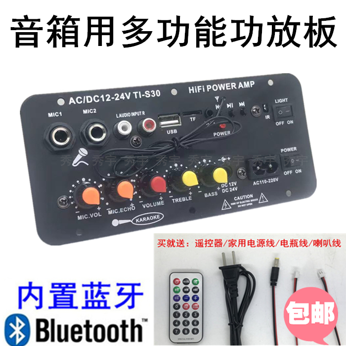 TI-S30多功能音箱主板12V24V车载低音炮功放板220V家用K歌扩音板