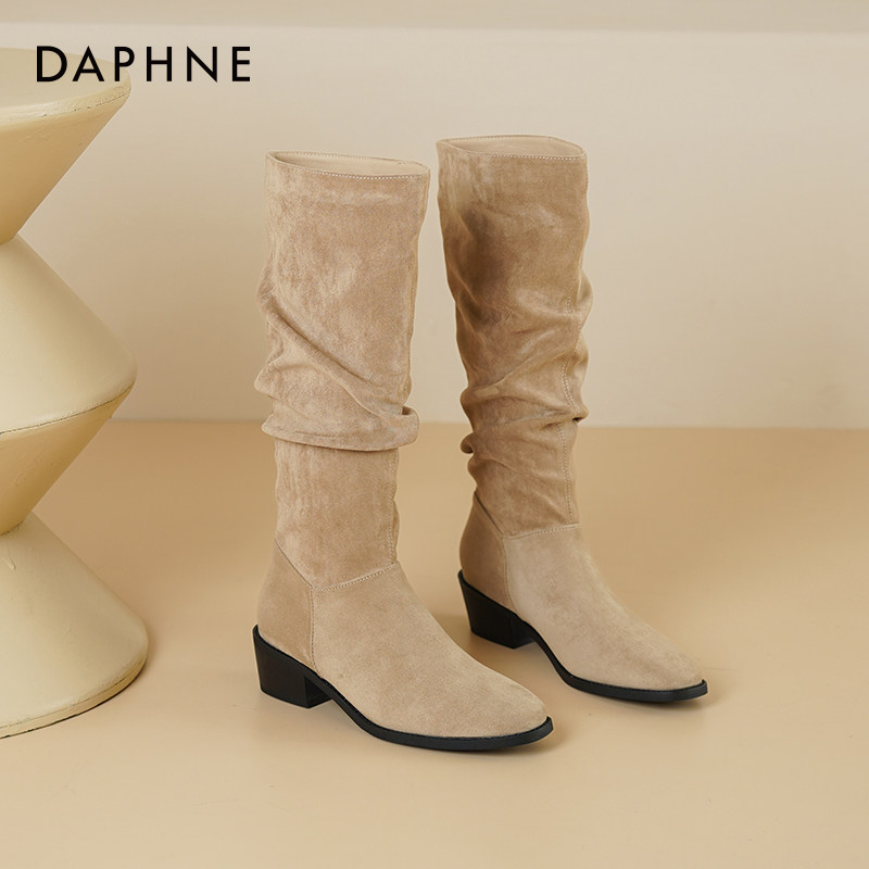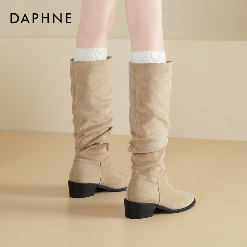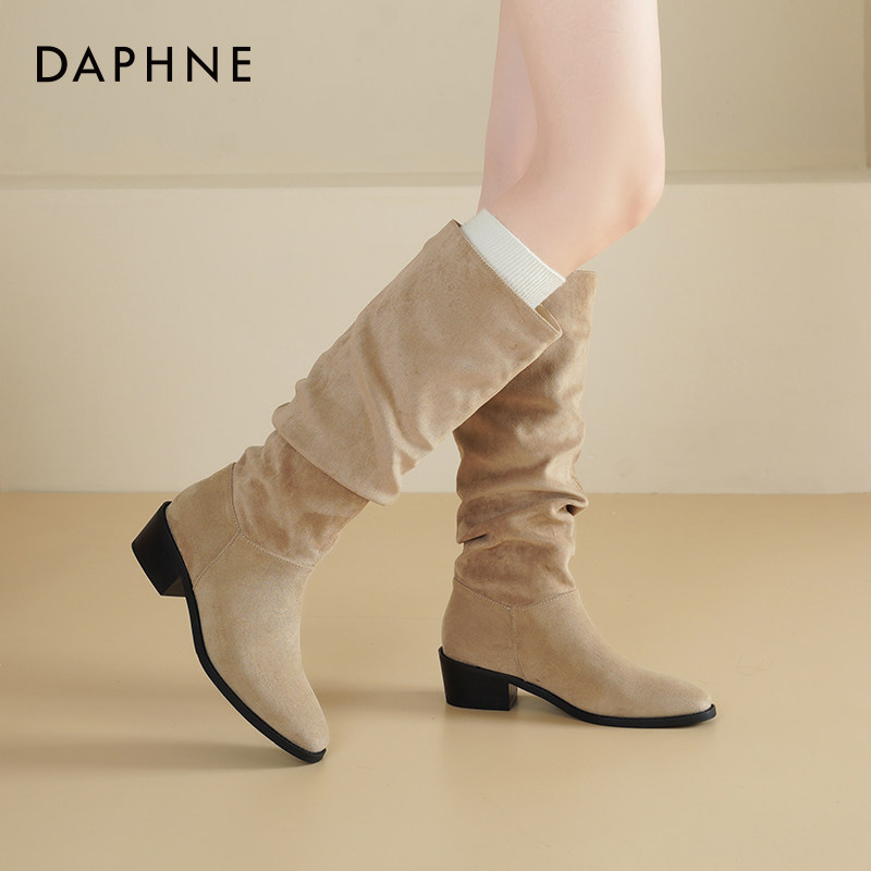 达芙妮长筒靴子女2025新款爆款冬季西部牛仔骑士长靴美拉德堆堆靴