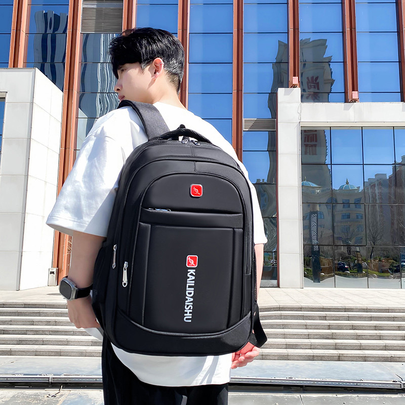 男士大容量15.6笔记本电脑双肩包书包旅行背包涤纶轻便黑色休闲