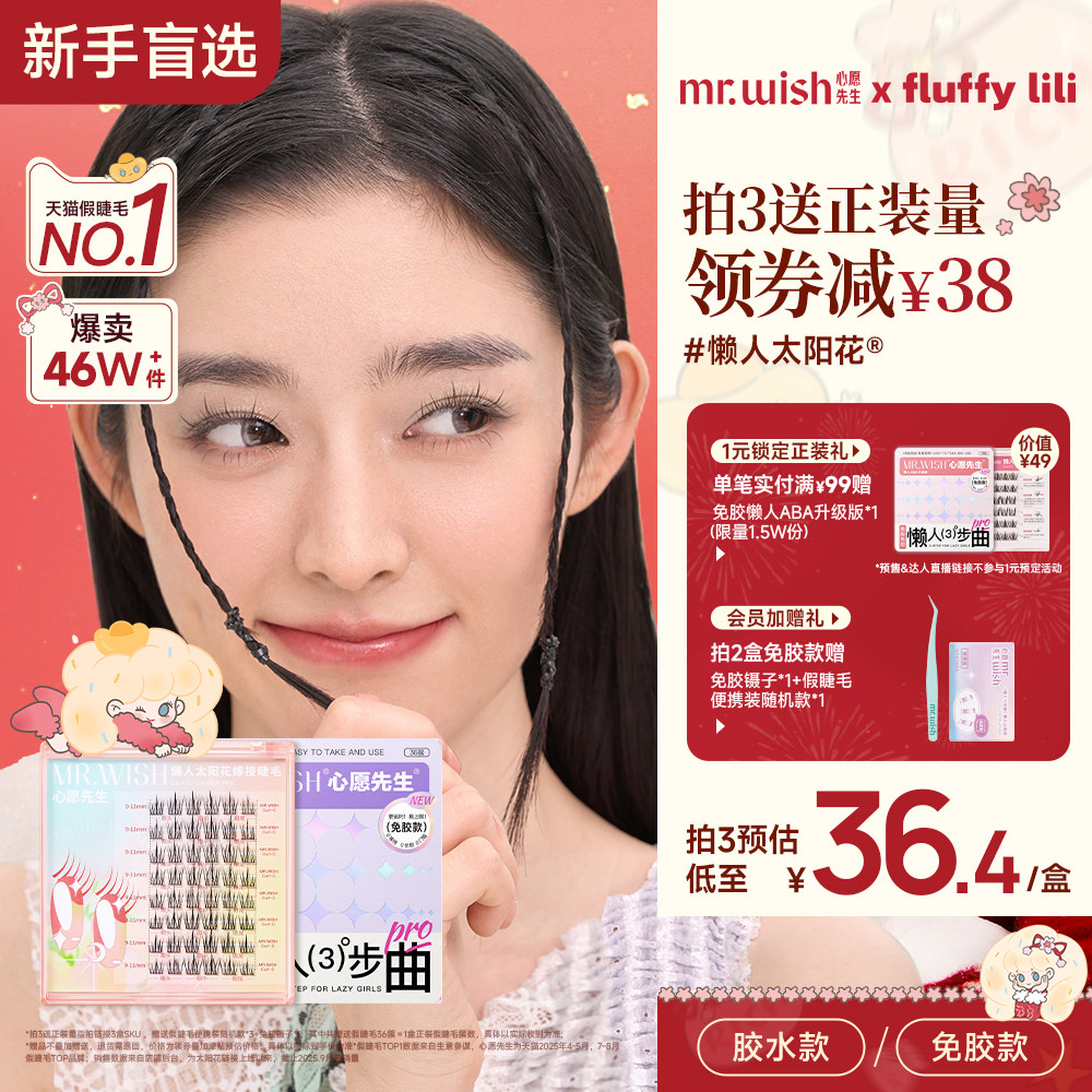 心愿先生免胶太阳花假睫毛分段式新手卷翘自然款免胶水自粘
