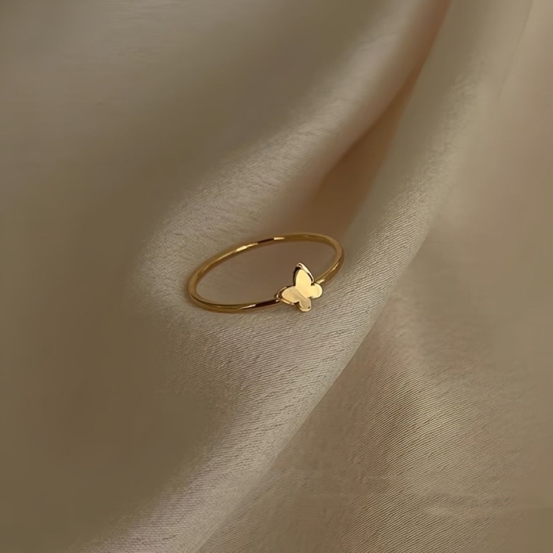 迷你双层小蝴蝶戒指女2025年新款轻奢简约素圈简约百搭可爱指环