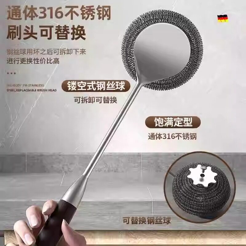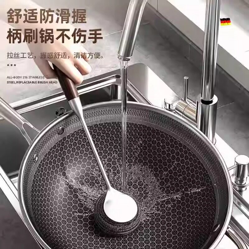 316不锈钢锅刷厨房专用不伤锅刷锅神器长柄洗锅刷钢丝球清洁刷子