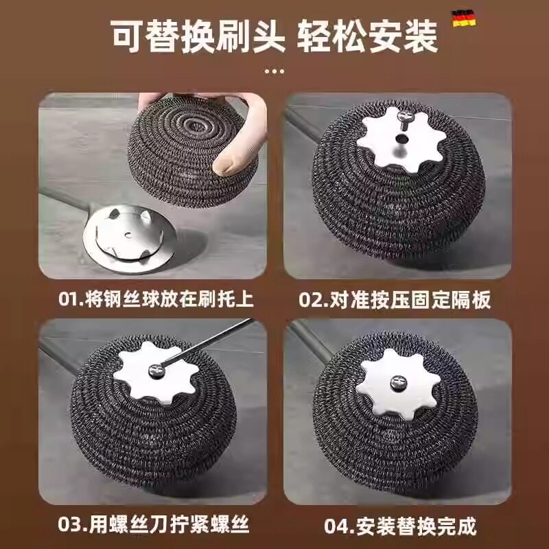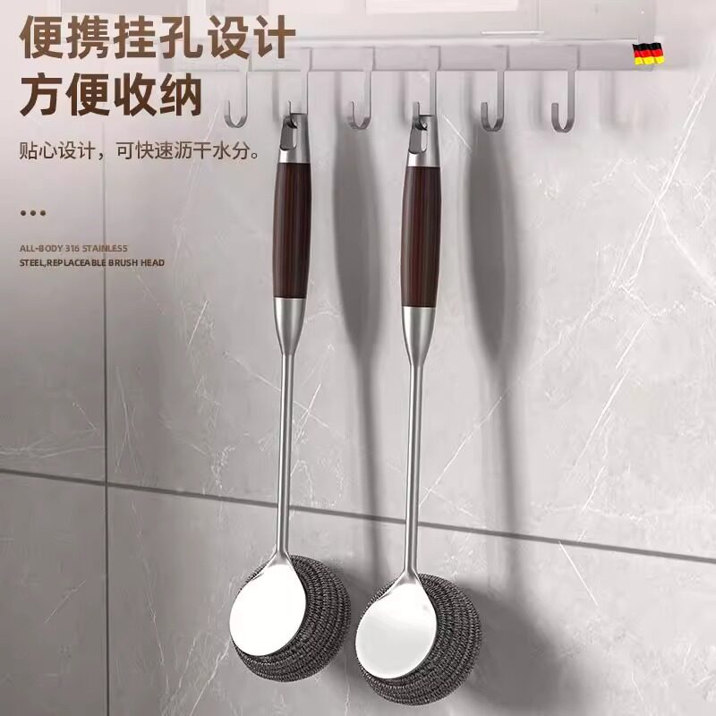带柄钢丝球刷子长杆洗锅不生锈清洁厨房不伤手洗碗瓶罐不掉渣灶台