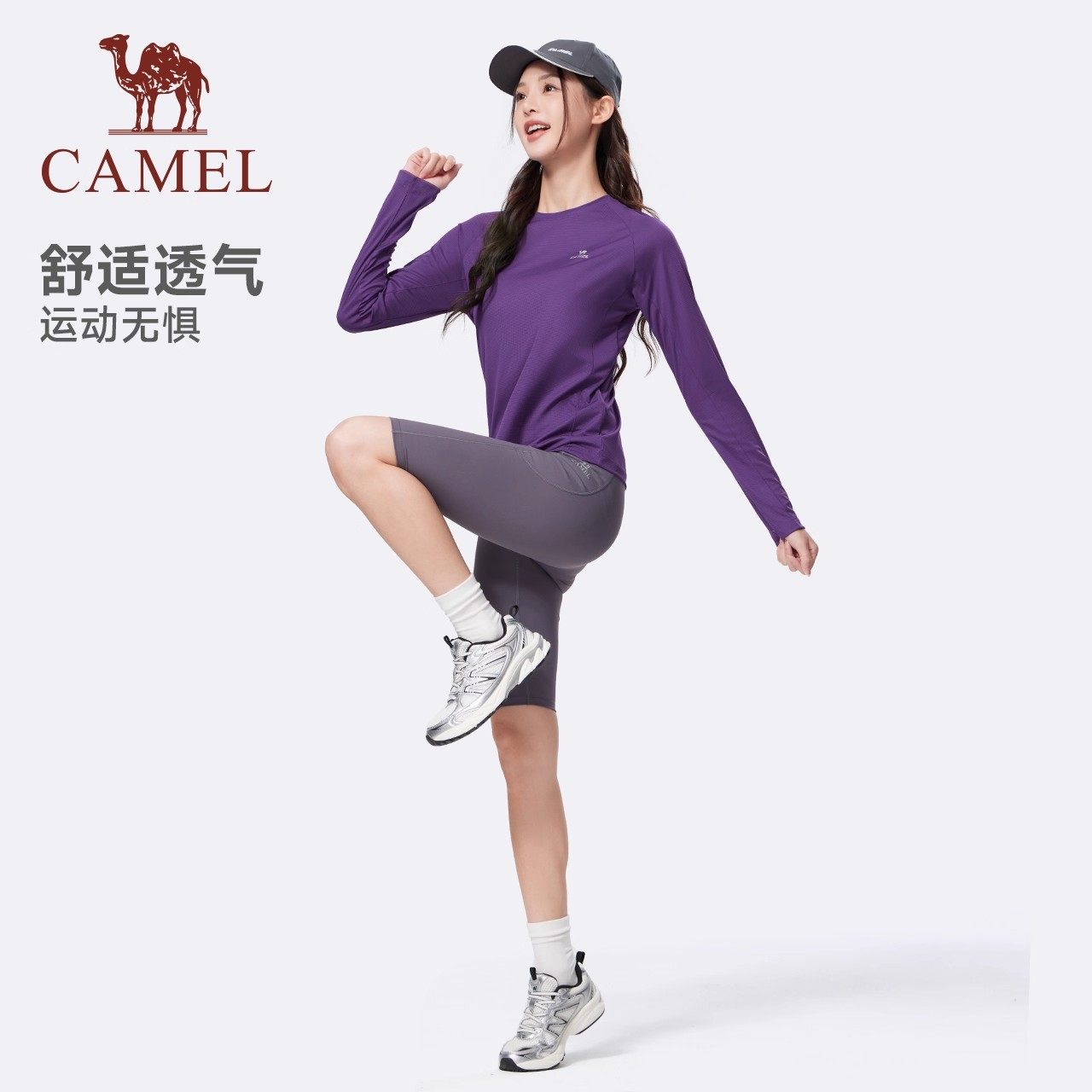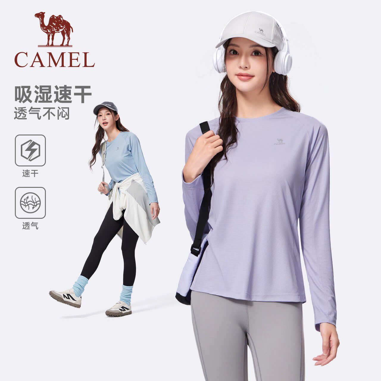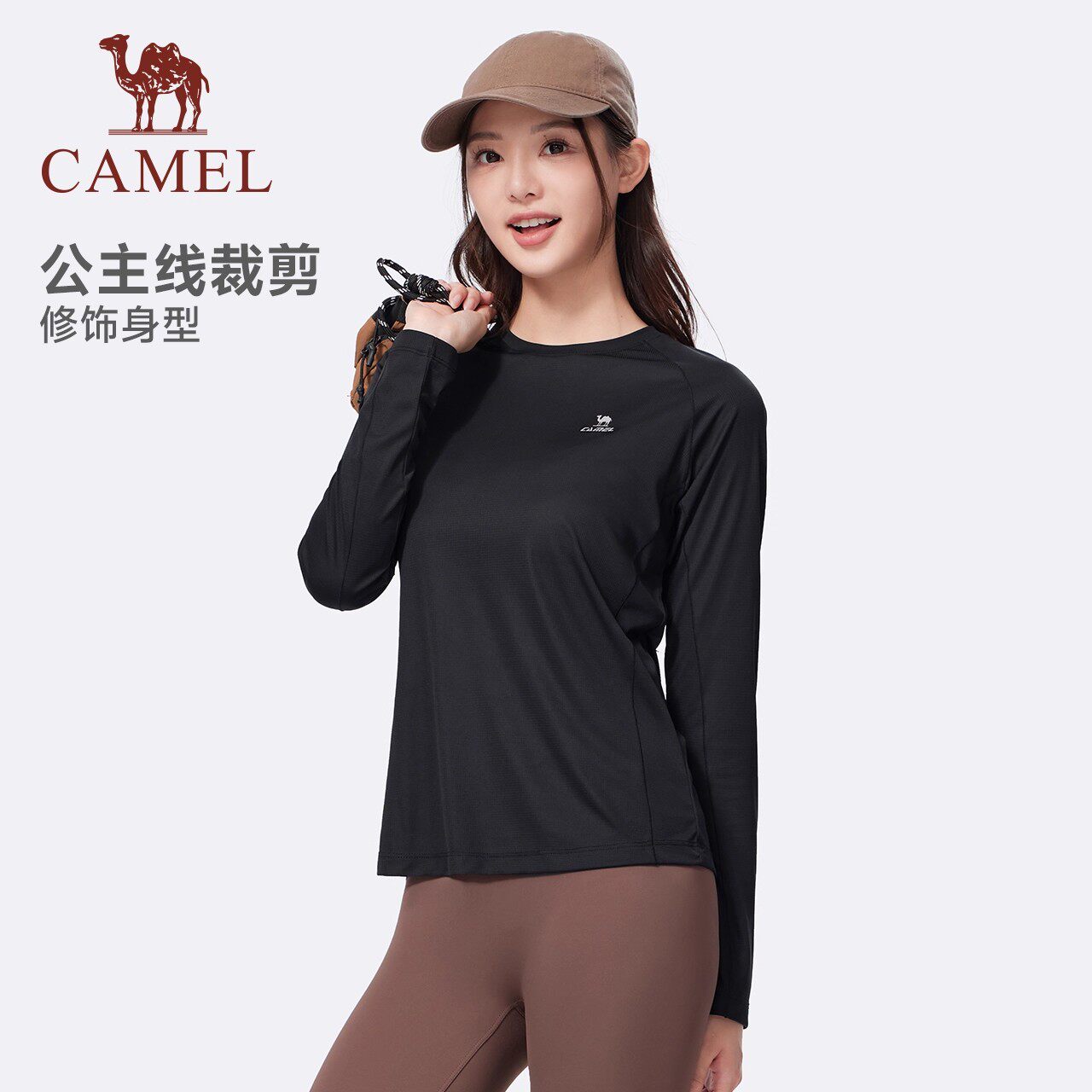 骆驼速干上衣运动长袖女 登山户外跑步徒步健身瑜伽服打底衫T恤夏