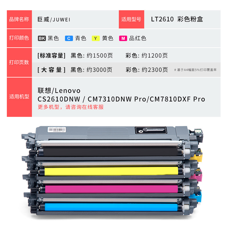 适用联想CS2610DNW粉盒CM7310DNW Pro CM7810DXF Pro至像彩色打印机碳粉盒LT2610BK CMY墨粉盒LD2610鼓架硒鼓