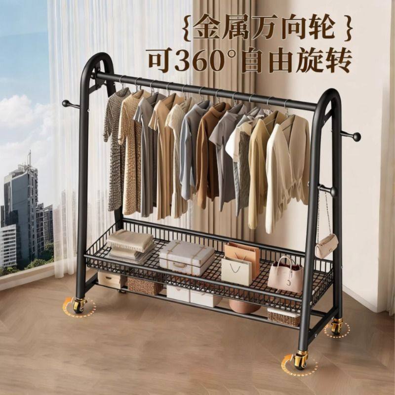 晾衣架落地家用可移动卧室美容院挂衣服架子室内阳台简易杆衣帽架