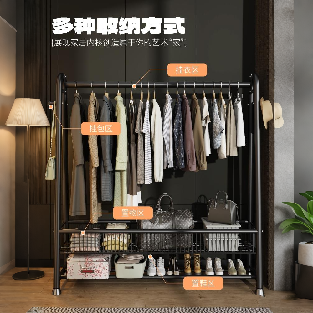简易衣帽架落地室内房间挂衣架子晾衣架家用卧室衣服收纳架置物