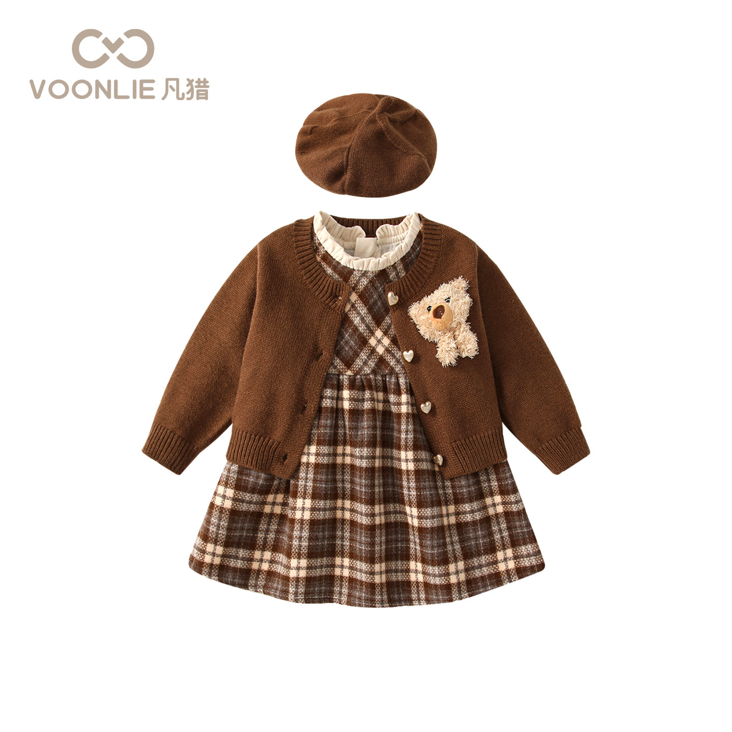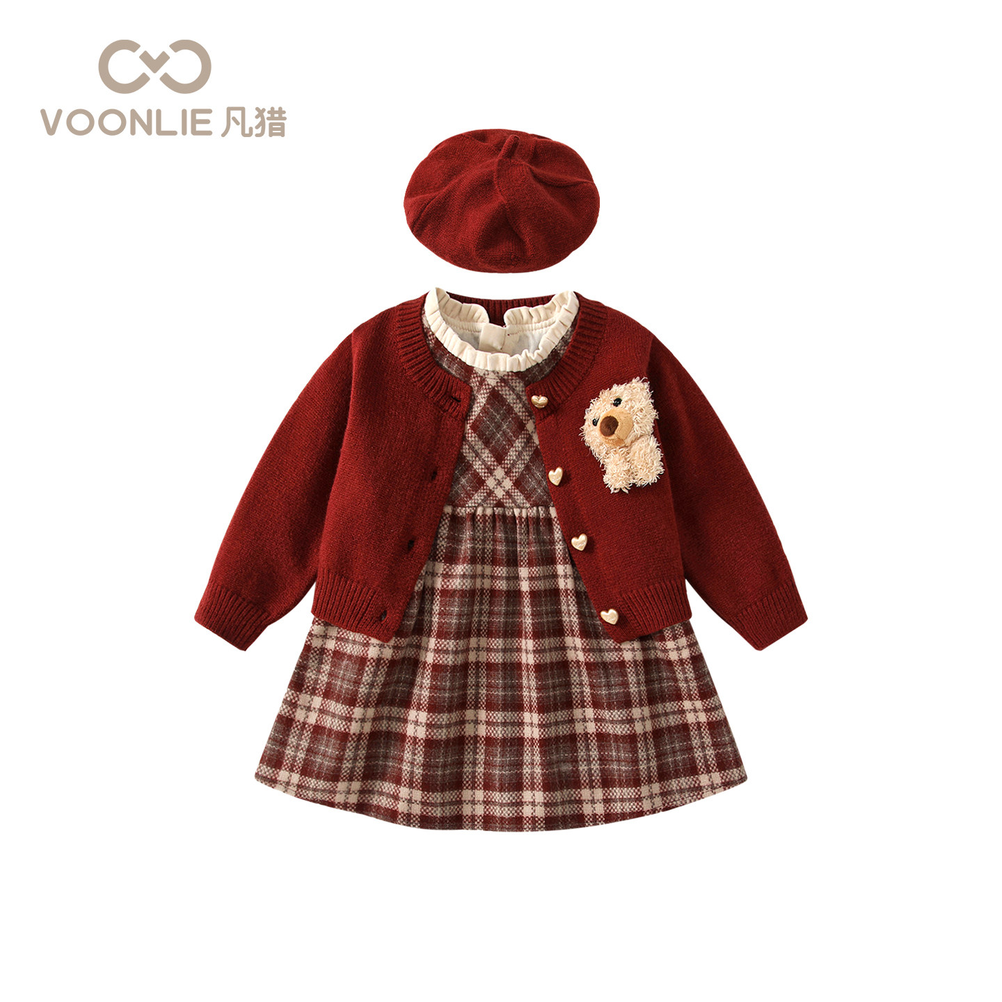 凡猎女童连衣裙秋冬装洋气时髦儿童公主裙开衫套装周岁宝宝礼服冬