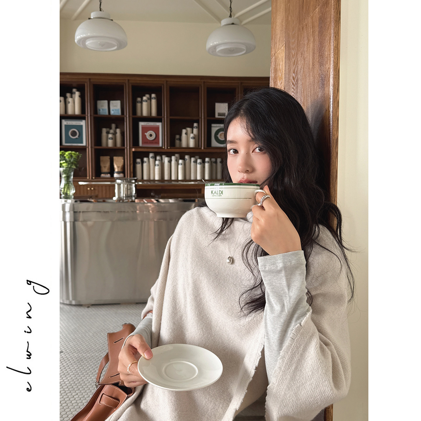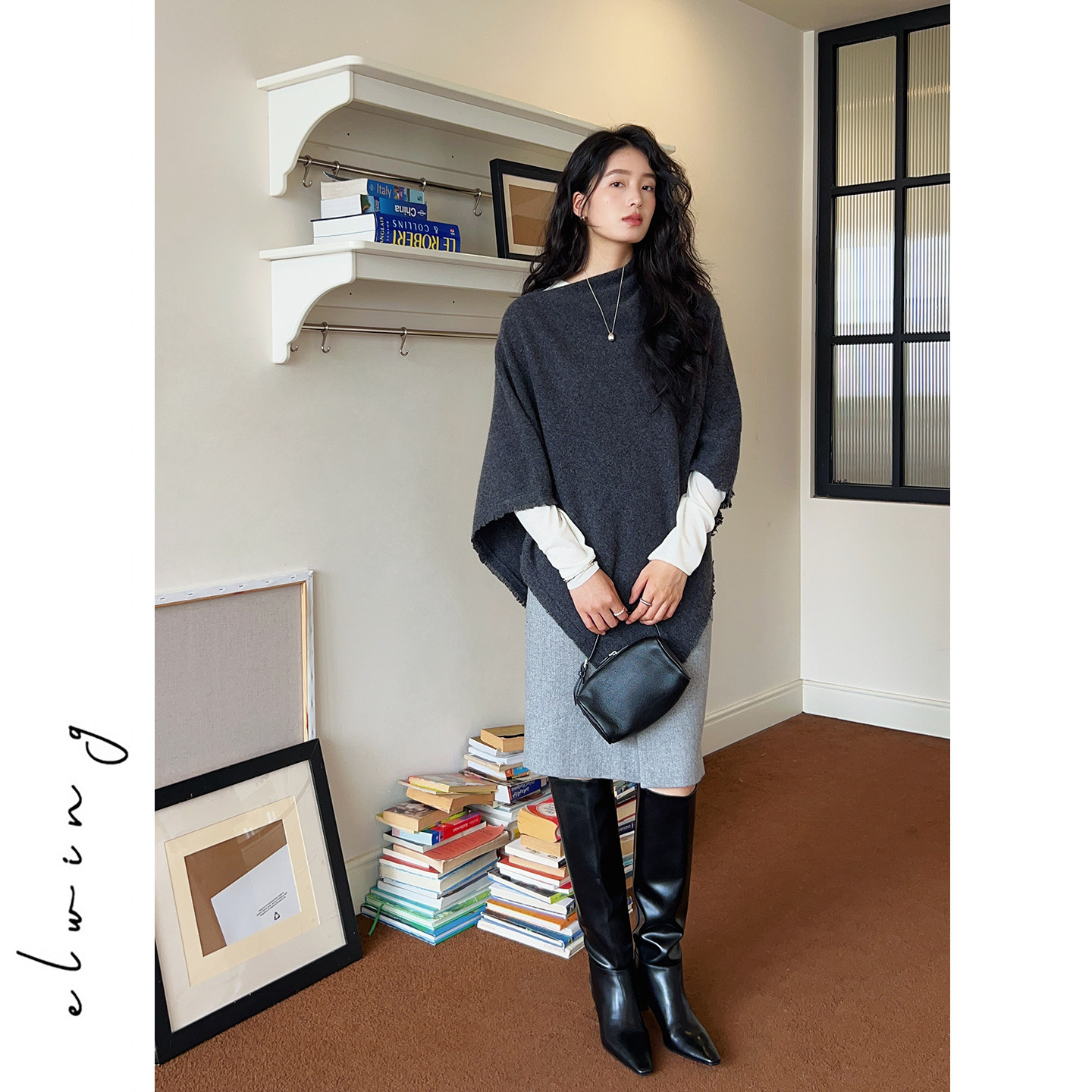 Elwing原创优雅亲肤全羊毛纯色手工流苏冬季加厚针织斗篷披肩