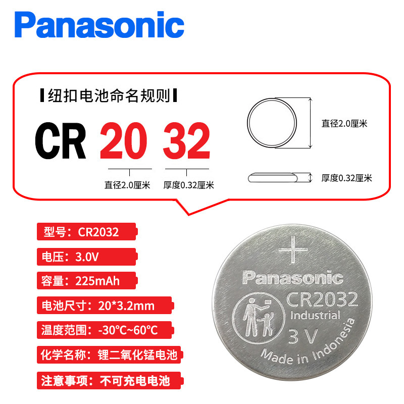 松下CR2032电池3V电脑主板体重秤电子汽车钥匙遥控器电视机CR2016