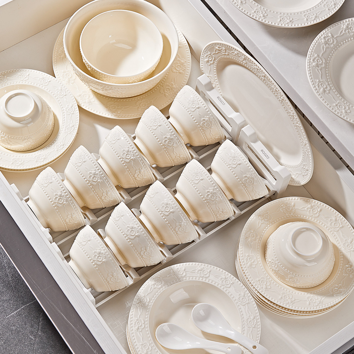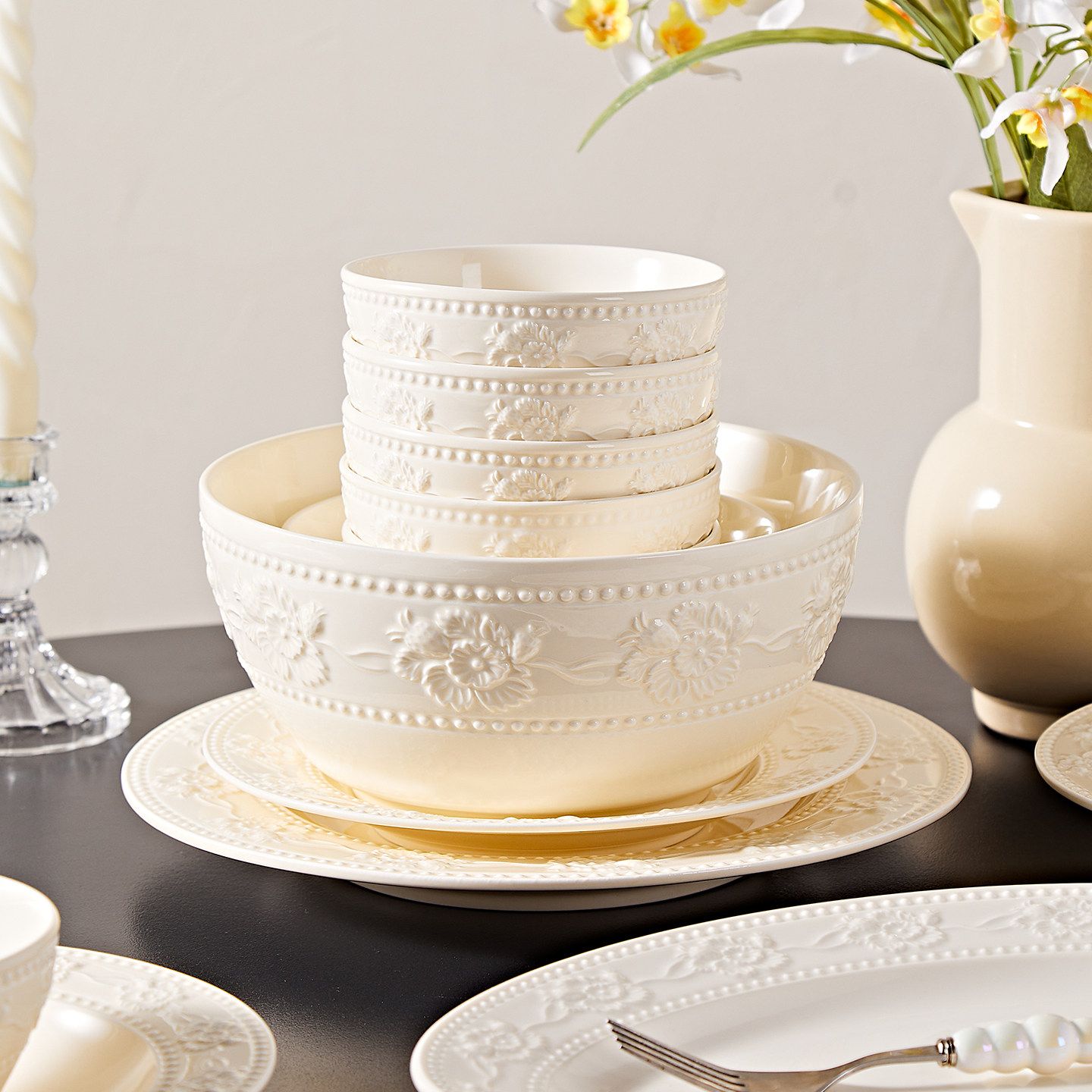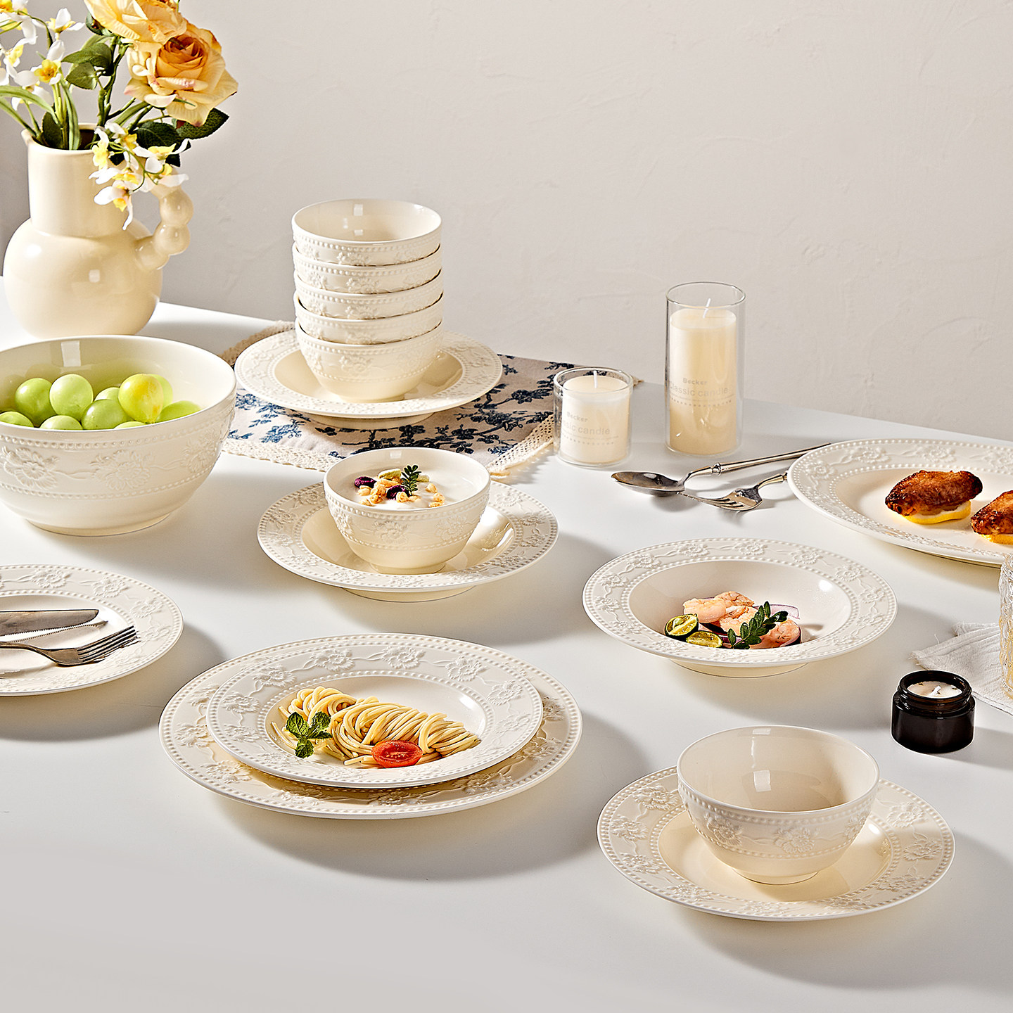 法式复古风餐具套装家用2025新款高颜值浮雕碗碟组合釉下彩乔迁礼